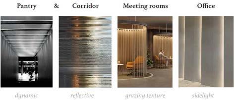 For the corridor, we wanted to integrate both general downlights and DMX-controlled linears, creating the function of both wayfinding as we are as excited during the transition phases of the working hours. The CCT was from 3500 - 4500K, considering combining both relaxing and slightly energizing for the improvement of circadian rhythms.