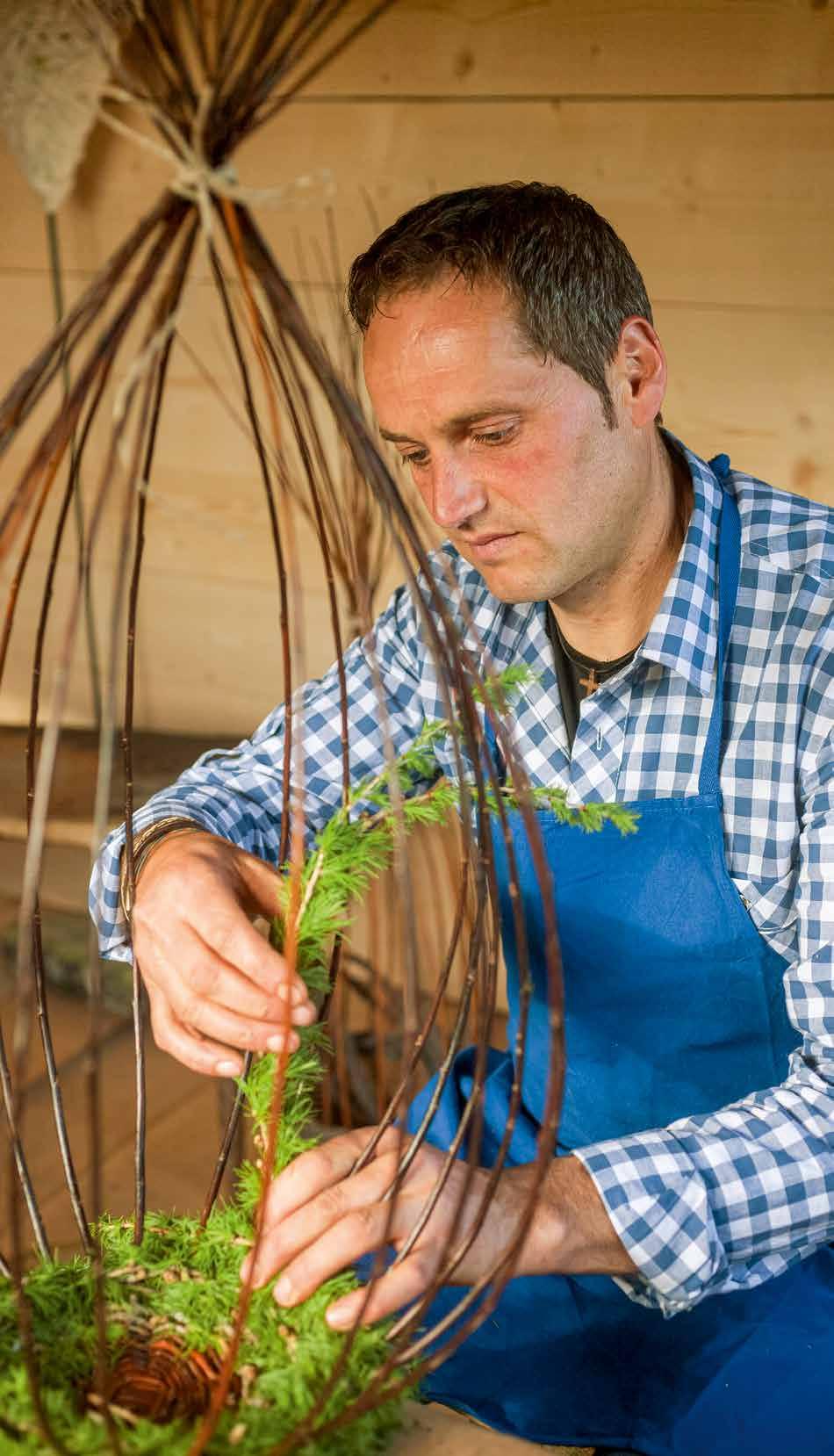 zienza e abilità”, racconta Erhard, mentre scortica con destrezza i rami. Poi bisogna creare l’ossatura del manufatto. Ramo dopo ramo il contadino intreccia i ramoscelli con abilità. Se i rami sono stati seccati in precedenza, occorre ammorbidirli un paio di giorni in acqua.