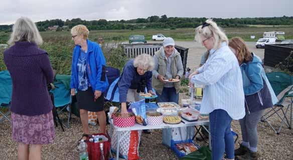 Having nervously checked the weather forecast on numerous occasions throughout the week we arrived equipped with waterproof gear and umbrellas and fingers crossed as the forecast was for it to stay dry until about 8pm. The sky was full of dark, rather threatening looking clouds and one of the members mentioned that a football match at Lowestoft had to be postponed because of heavy rain. Undaunted, tables were assembled on the beach and lots of marvellous food was laid out, much of it was