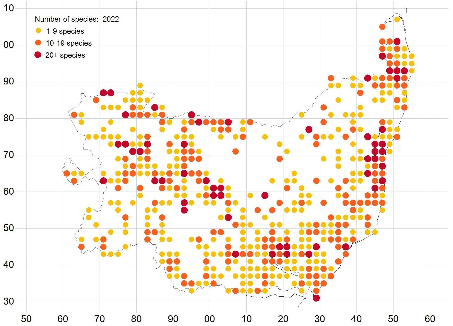 An amazing 104,000 individual butterflies were sighted and recorded in over 31,000 recordings by approximately 600 recorders. In truth, there were more sightings because not all could be confirmed and, also, estimates for large numbers tend to underestimate. Additionally, some records are system-rejected for various reasons. Butterflies were spotted from New Year’s Day through to Boxing Day. I would like to give a big thank you to all who took the time to record their sightings. It takes your time and sometimes there are IT related issues, but your perseverance is appreciated and contributes to the long-term conservation of our butterflies. The lifting of COVID-19 restrictions may have helped in reporting so many sightings, particularly with those more remote species which could not be visited many times, if