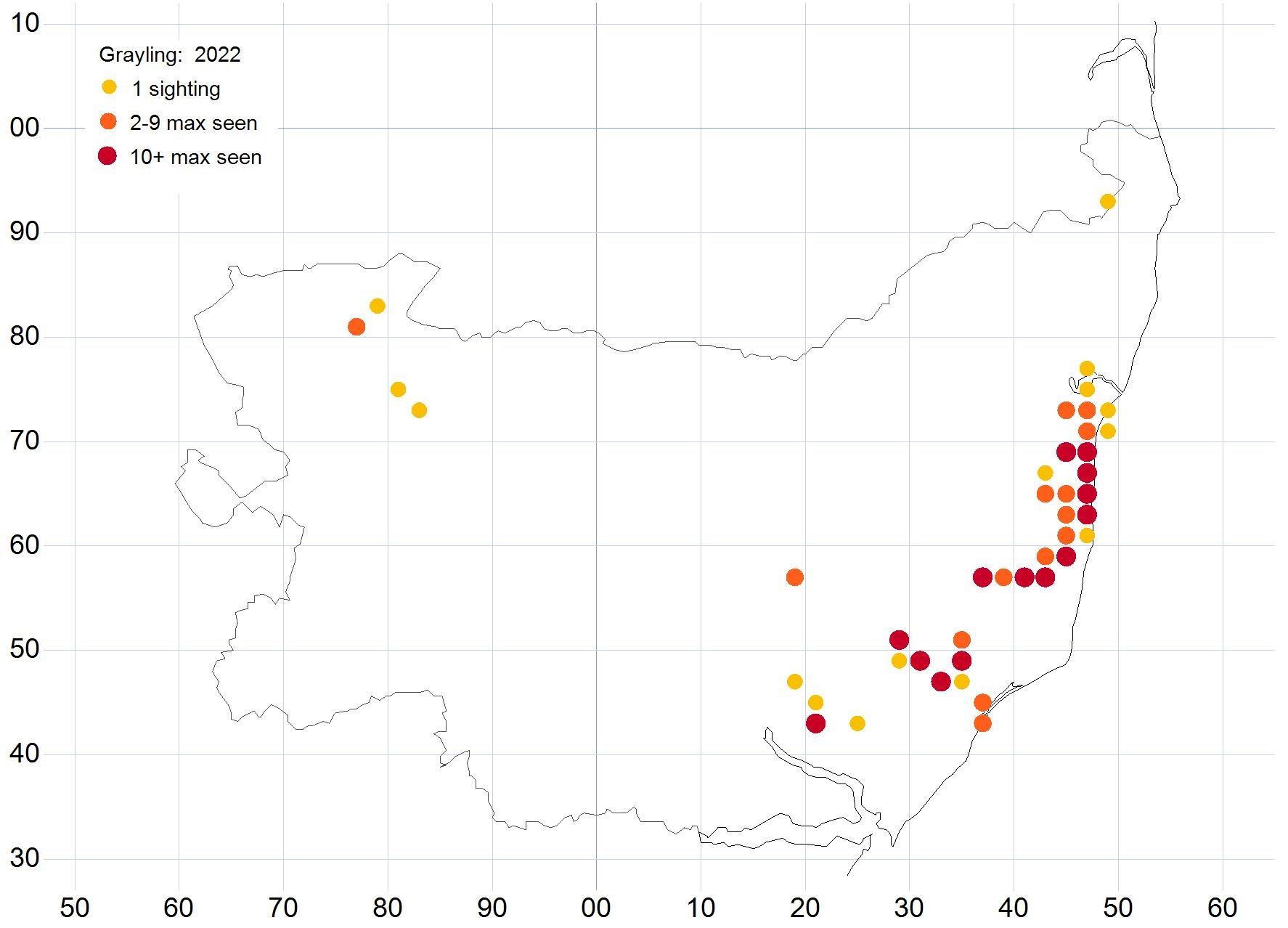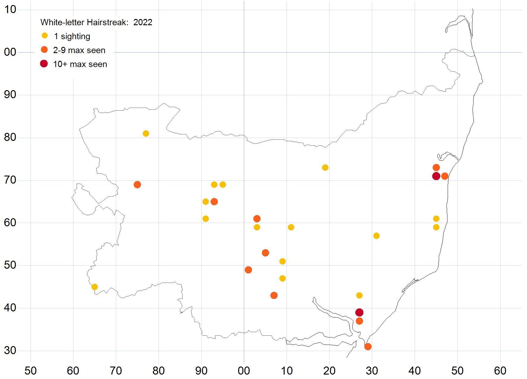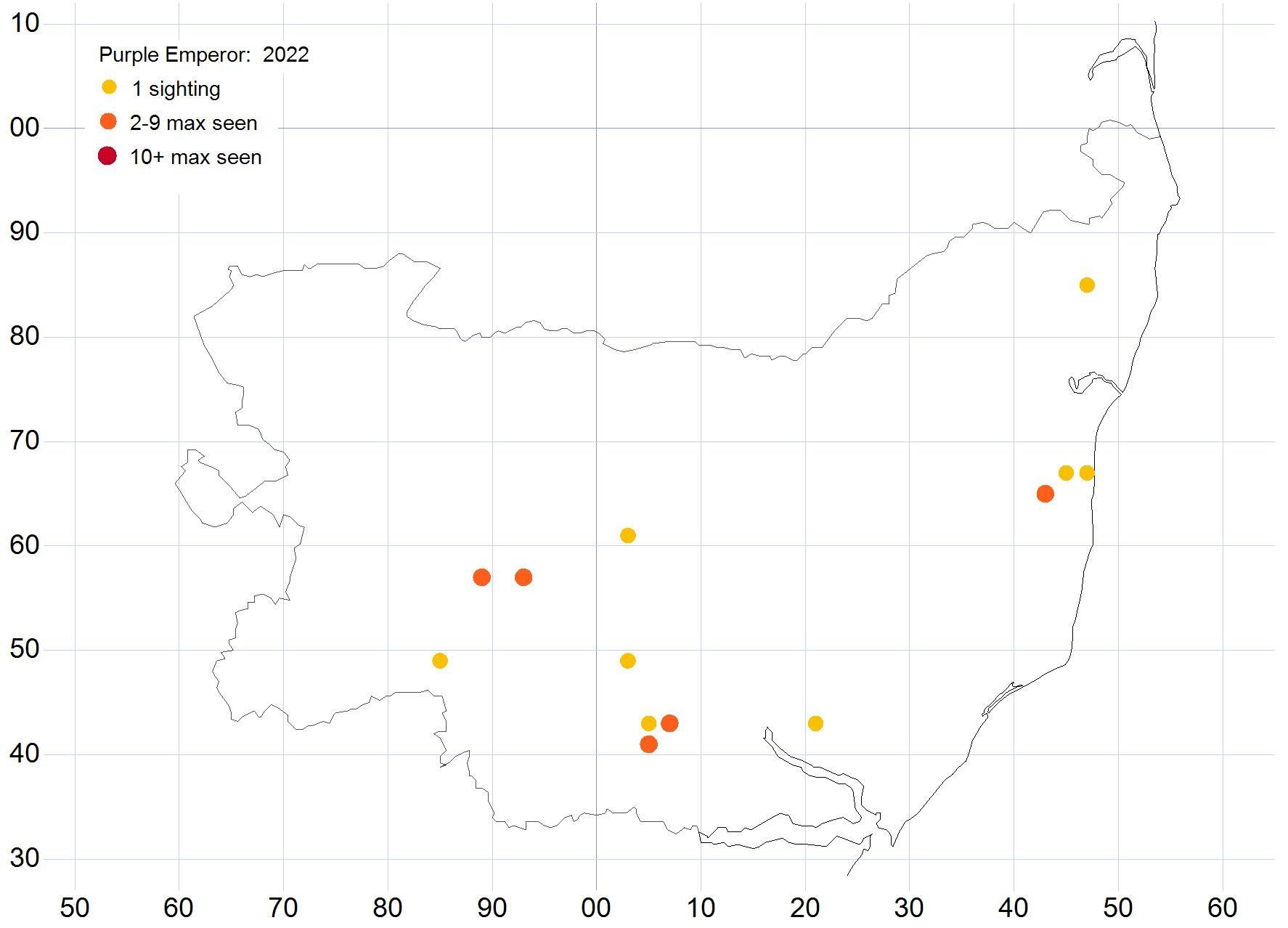 Silver-washed Fritillary had one of their best years with dozens of adults seen flying along transect routes in Minsmere and it was a similar scenario in many of our larger and more mature woods. White Admiral also had a good season and often came down to nectar on bramble and other flowers in glades. During the hottest spells, adults were observed aestivating in hazel and other trees, occasionally joined by Grayling. White Admiral is another species which may suffer from the drought. It hibernates as a third instar larva, but many honeysuckle plants were withered and dead-looking until late summer or even autumn far from perfect for a small caterpillar. This is a Biodiversity Action Plan (BAP) species for Suffolk, and I wait with cautious optimism to see if the 2023 season is a good one (historically it has been cold winter and spring weather which has been linked to low numbers).