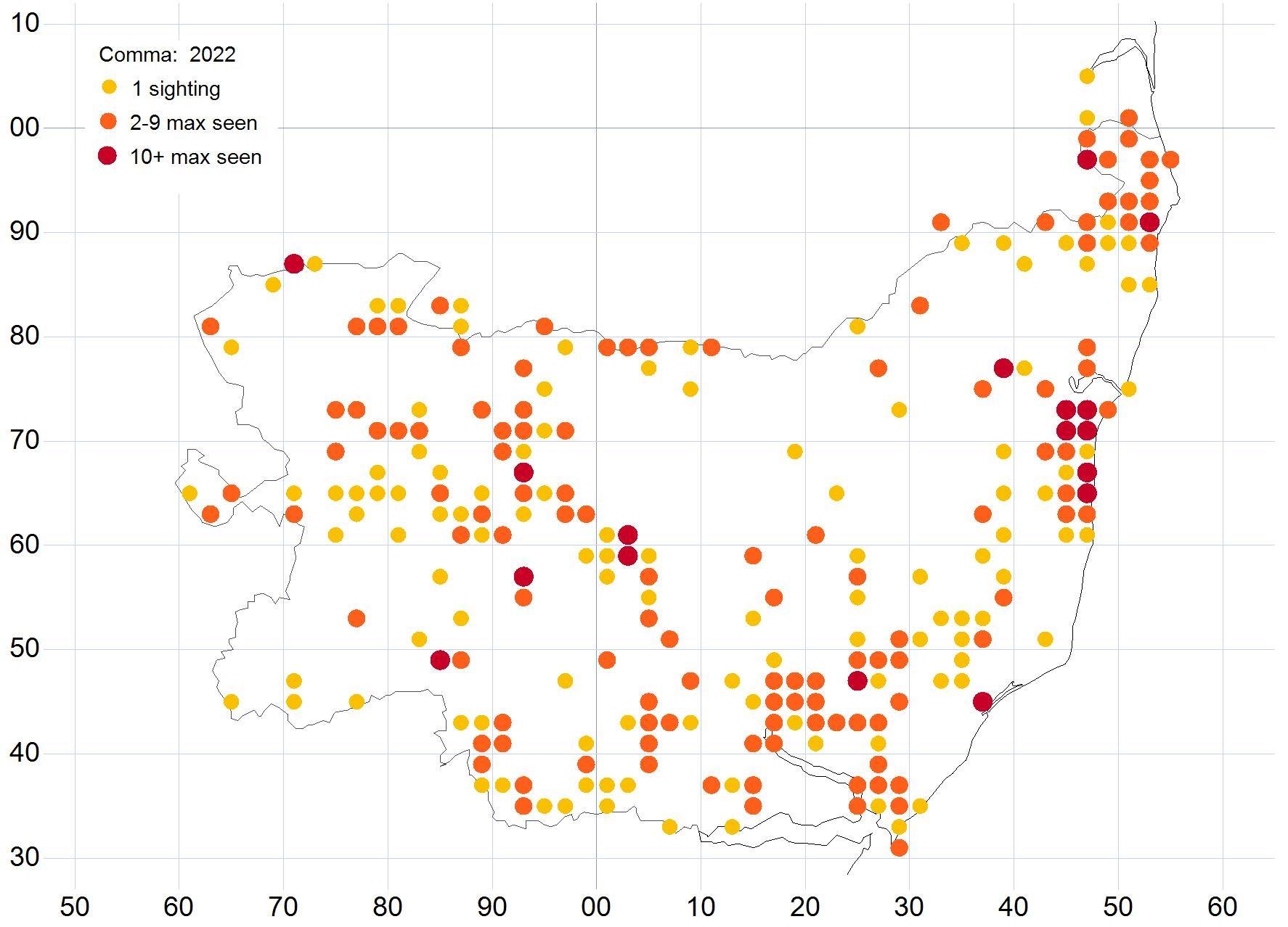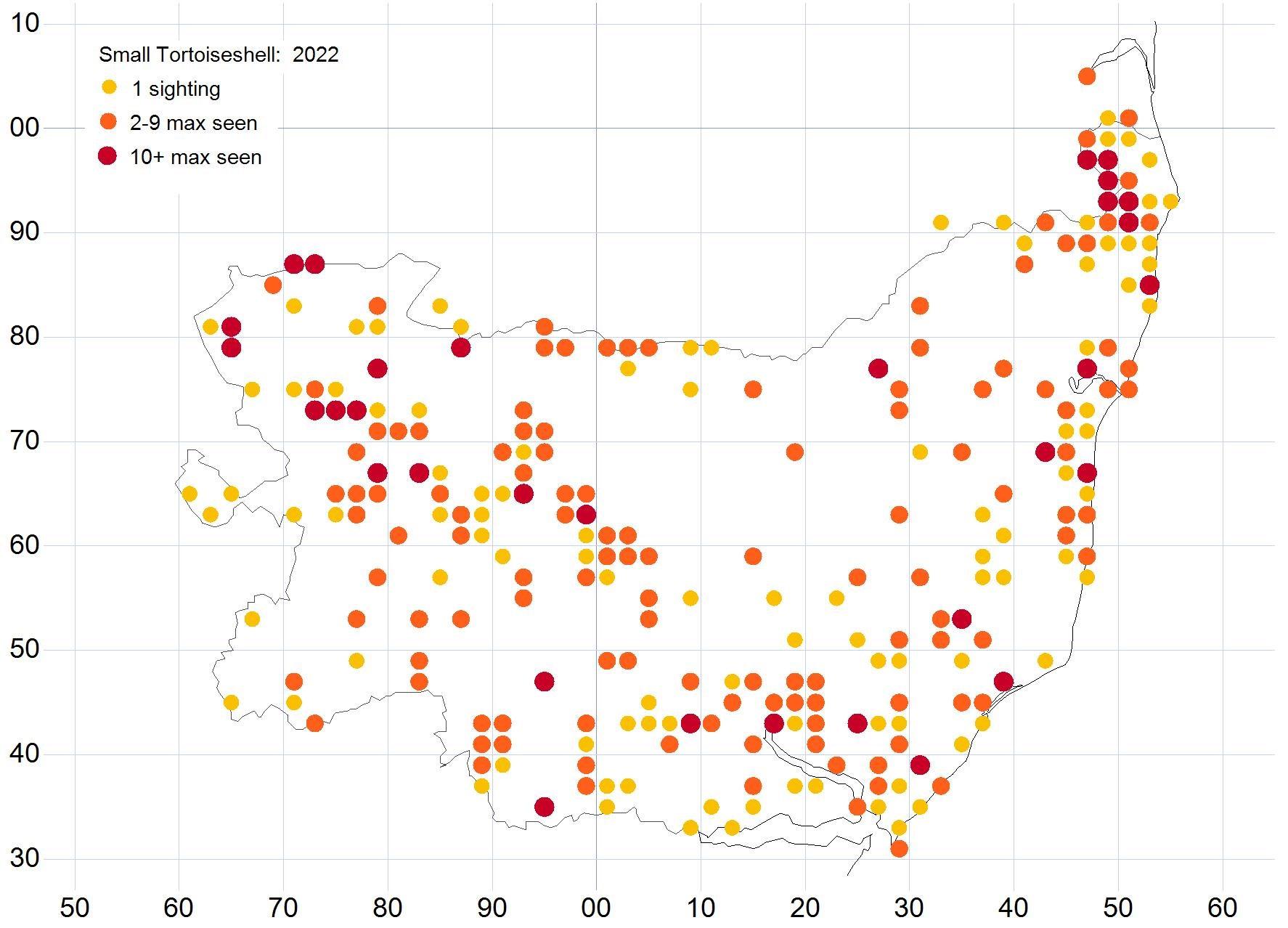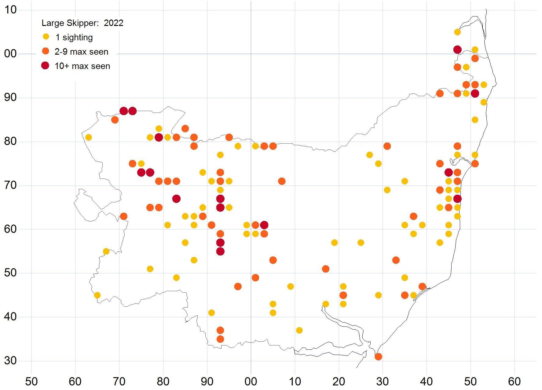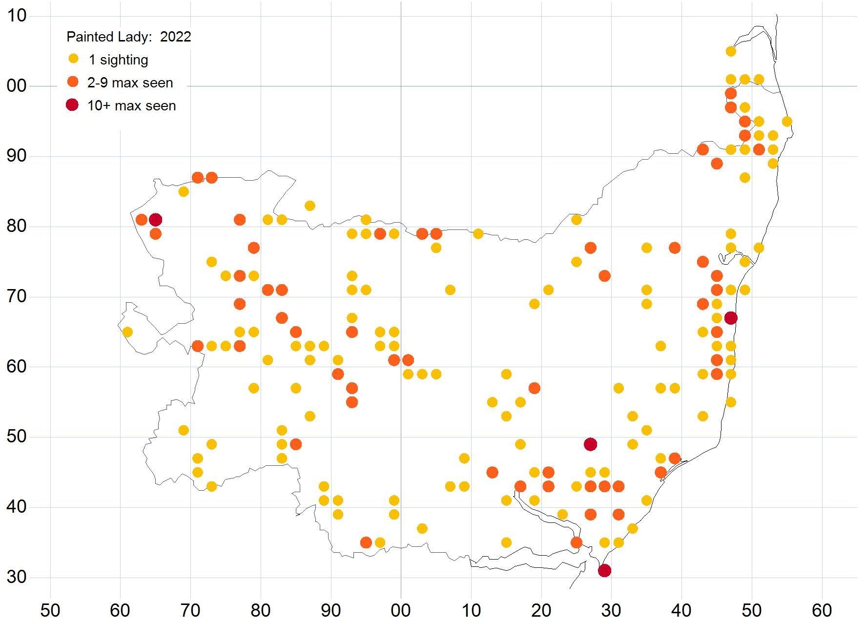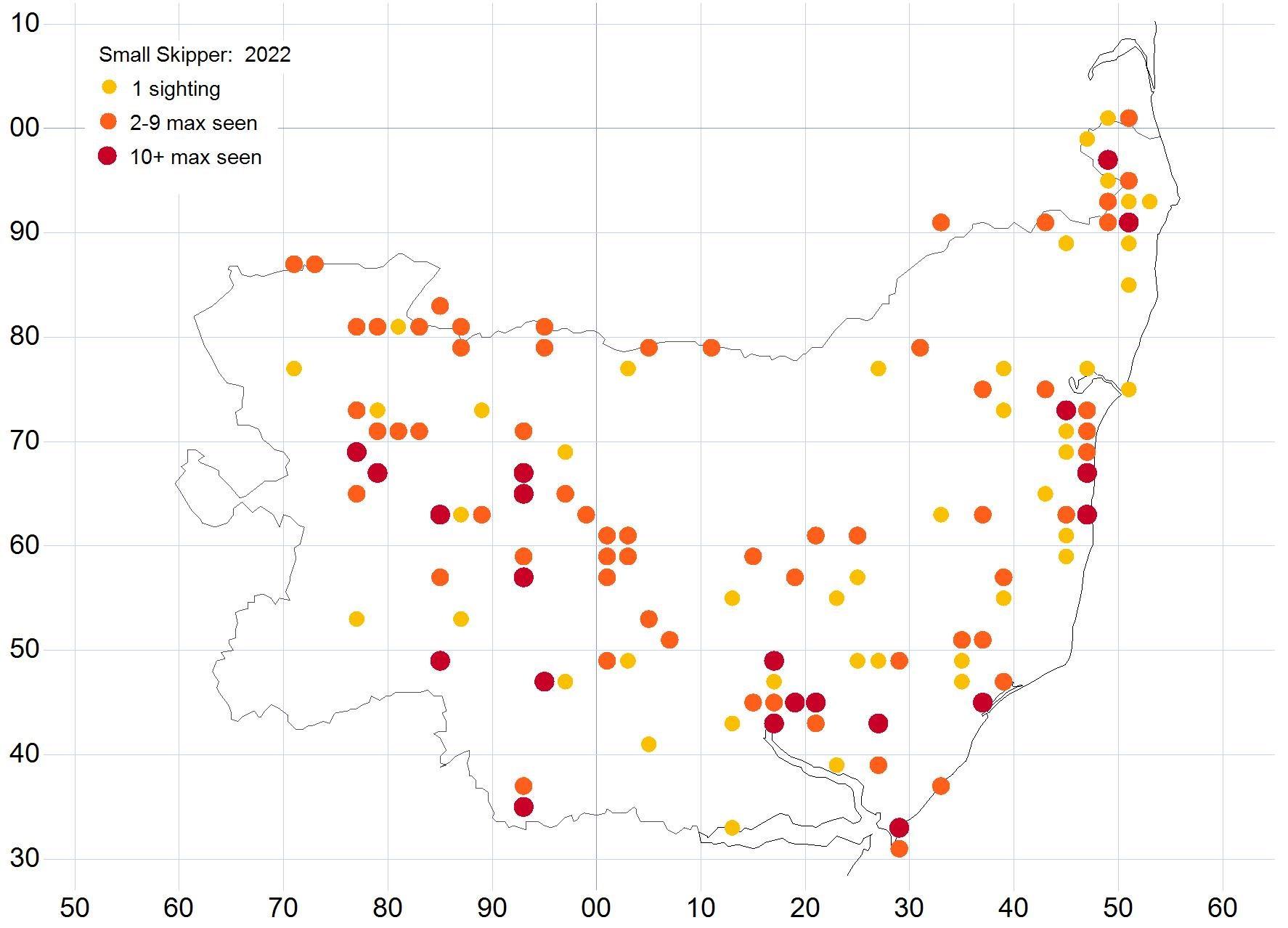 This is my second report as County Butterfly Recorder (CBR) for Butterfly Conservation and Suffolk Naturalist Society, following on from the 2021 report where, for continuity’s sake, I followed the layout of the previous CBR. Here I wish to bring in some changes to the format to reflect the way other CBRs report and how textbooks and field guides group species into families. I hope that it is reader friendly while still offering enough information for those who wish to study data and trends etc. A full report will follow in the New Year, published by Suffolk Naturalists’ Society and will contain additional data, maps and charts.