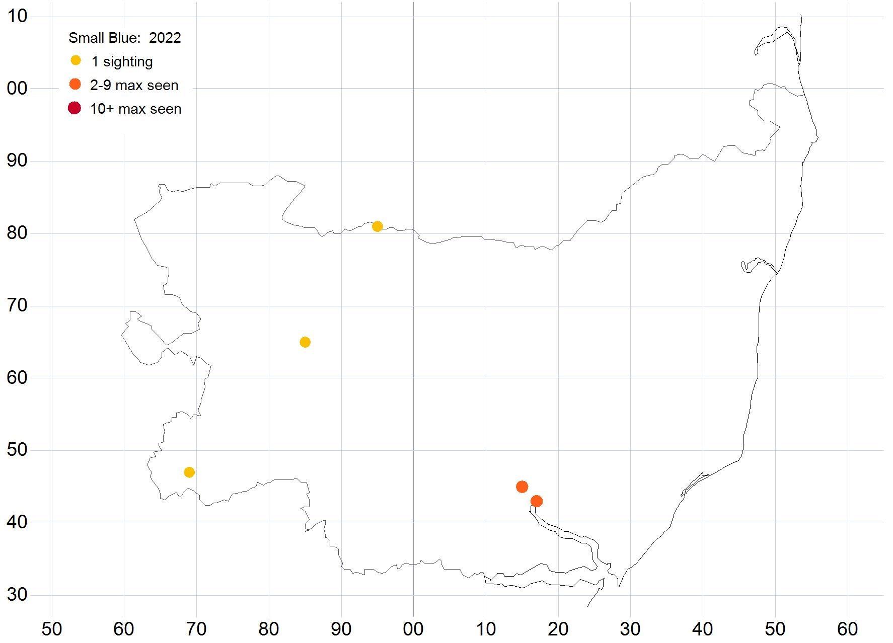 East coast migrant specialties, Camberwell Beauty and Large Tortoiseshell are eagerly anticipated each year, but no Camberwell Beauty were recorded in 2022. Large Tortoiseshell were reported in both Spring and Summer broods in March and then June, north of Stowmarket and also near Bury St Edmunds in June. Sadly, no pictures are available. There was one final surprise in the year in the form of a Long-tailed Blue reported in October at Felixstowe Ferry. Again, no photographs to show but this is quite a distinctive species and, despite its diminutive size, is capable of long migrations.