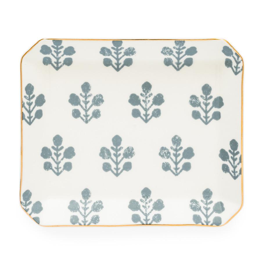 TRINKET TRAY, DUSTY BLUE FLORAL 6.25 x 5.25 inches