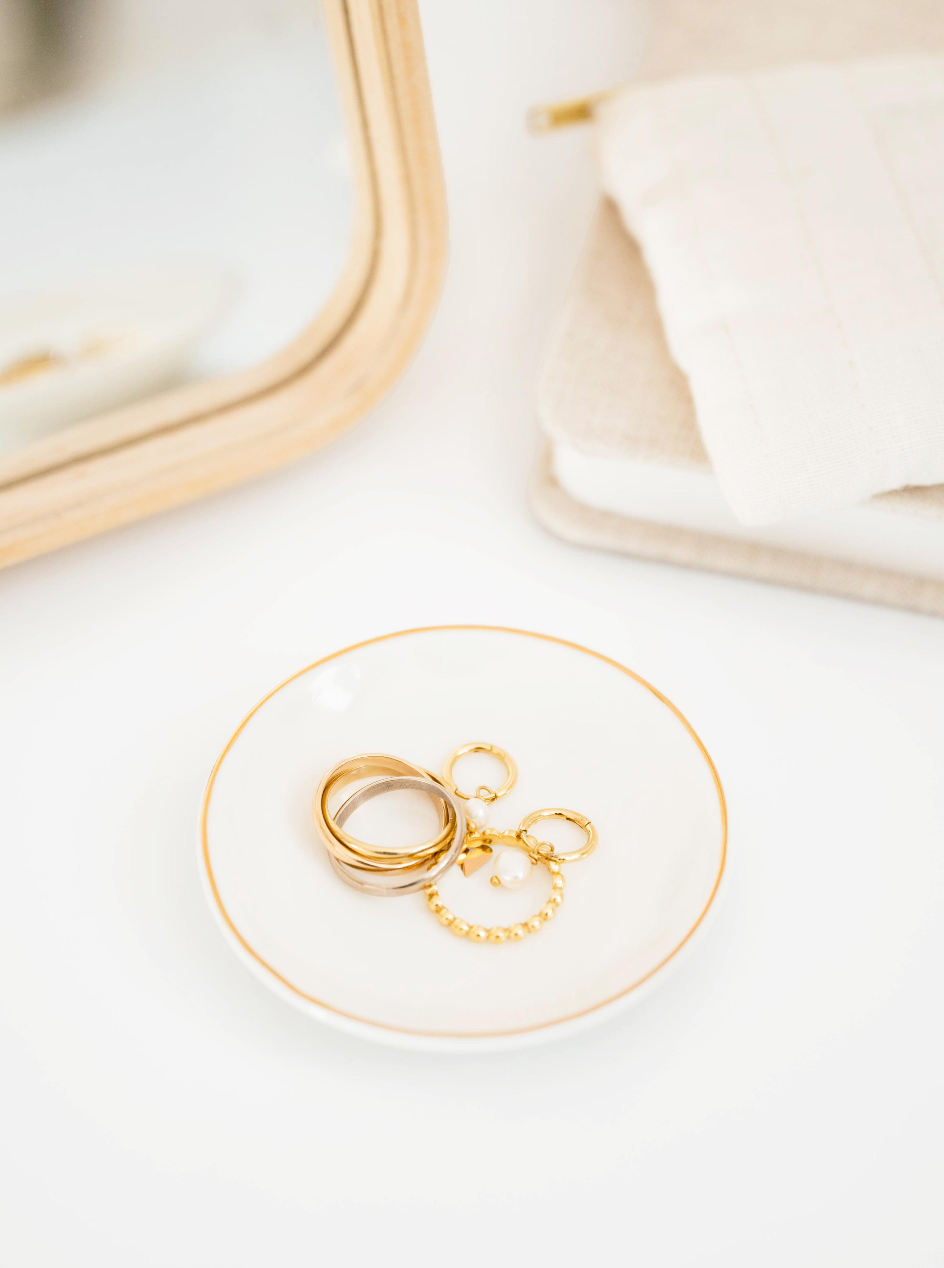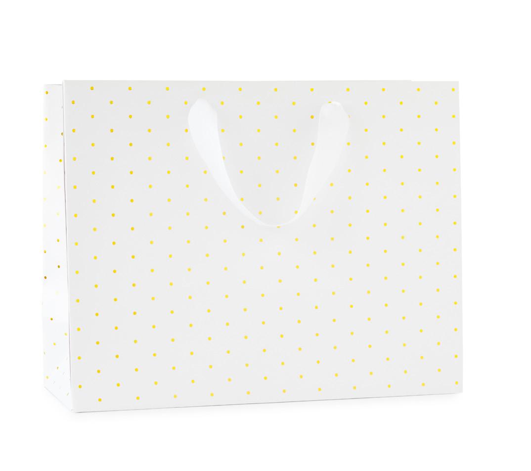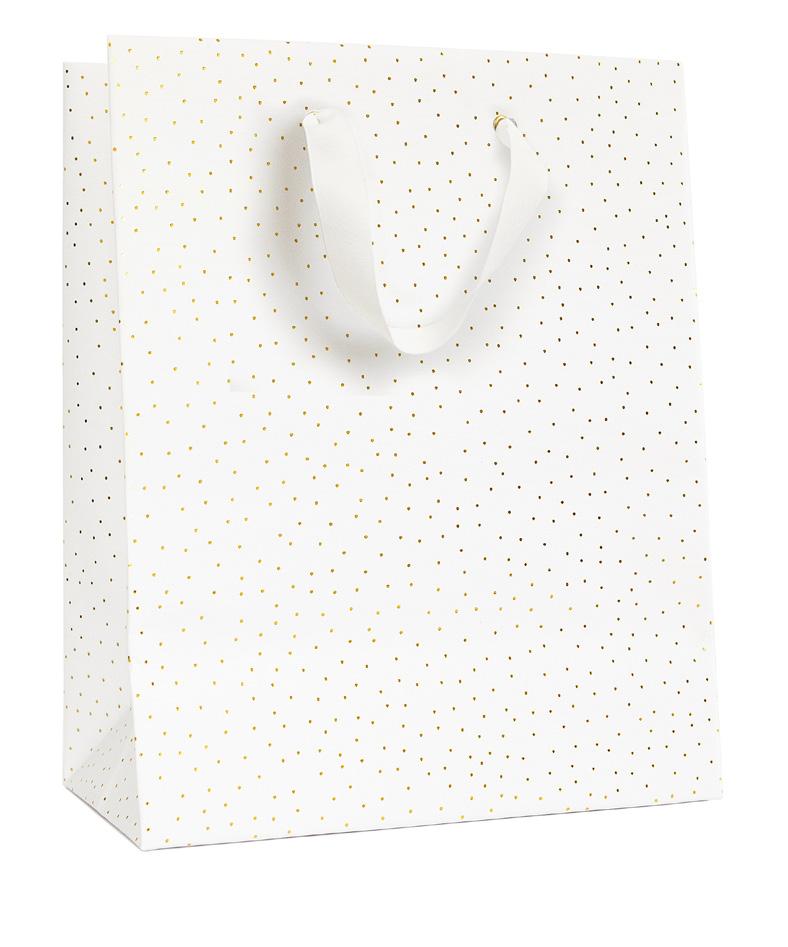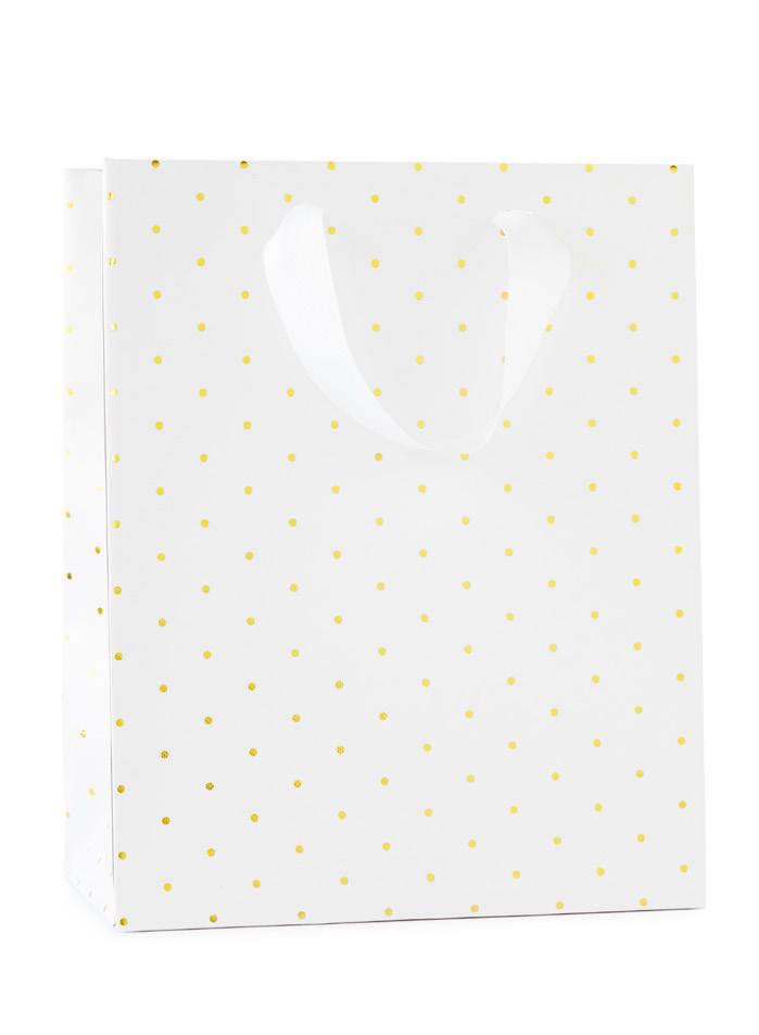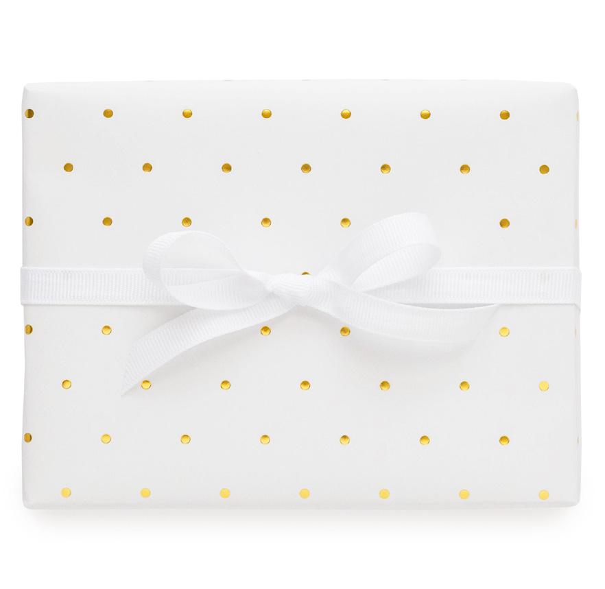 GOLD ZIPPER WITH GROSGRAIN RIBBON PULL, WHITE FABRIC LINING