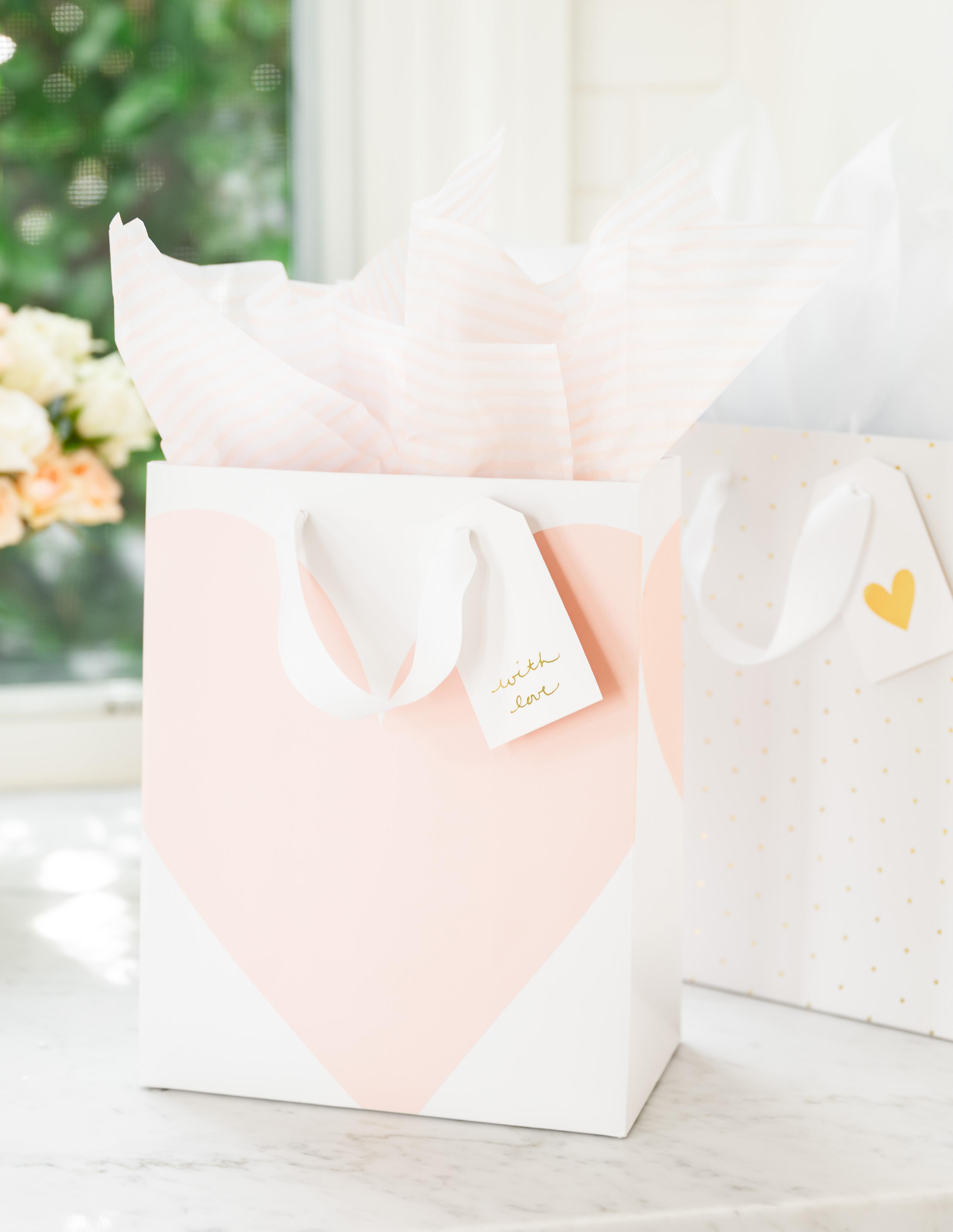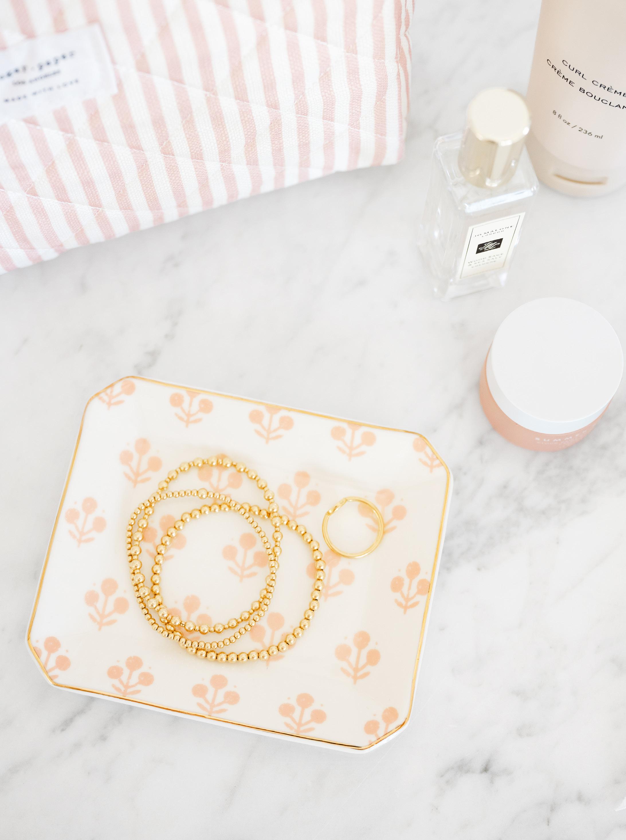 7 x 10 INCHES, GOLD ZIPPER WITH GROSGRAIN RIBBON PULL, SIGNATURE PINK FABRIC LINING