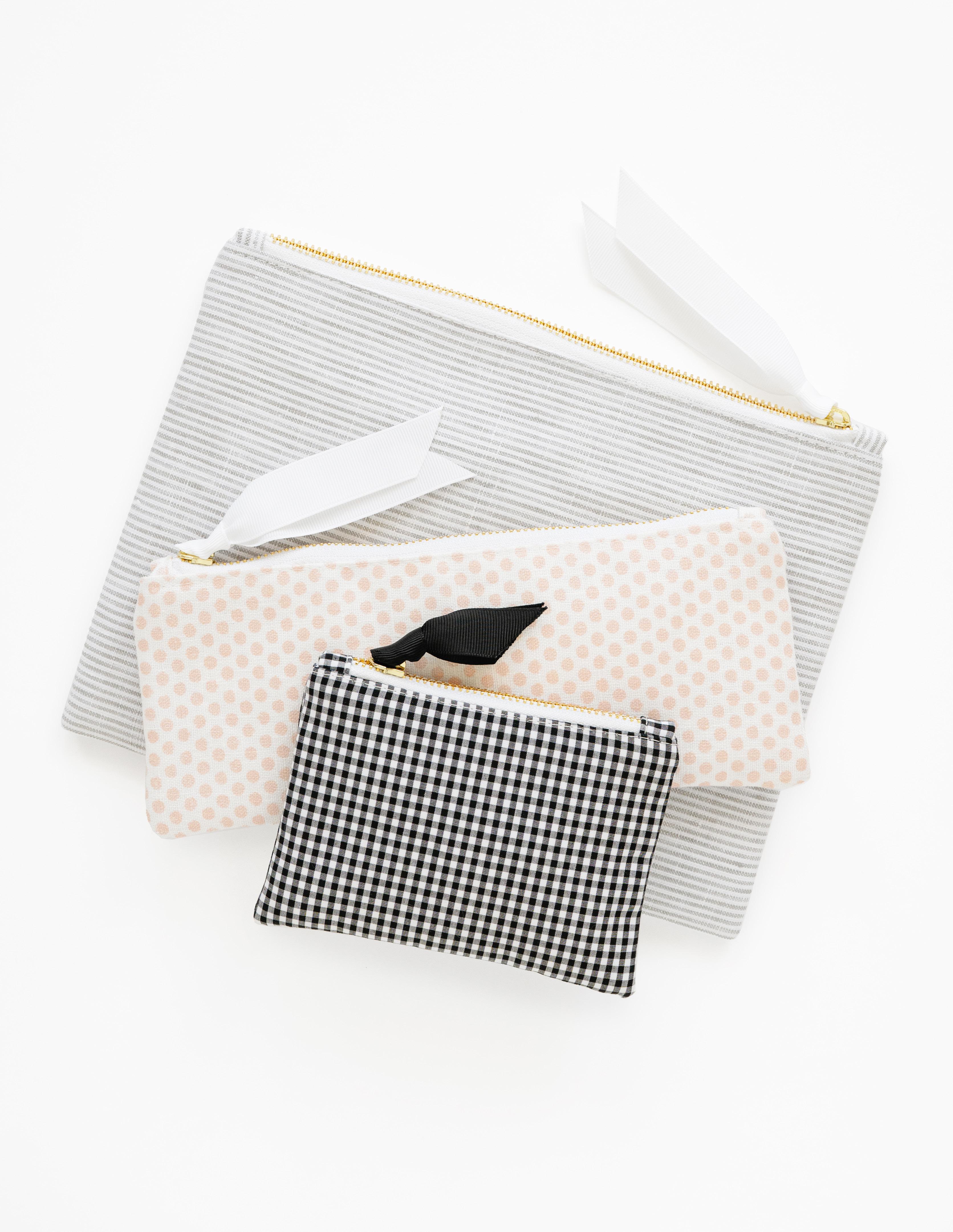 PENCIL POUCH, BLACK + WHITE GINGHAM