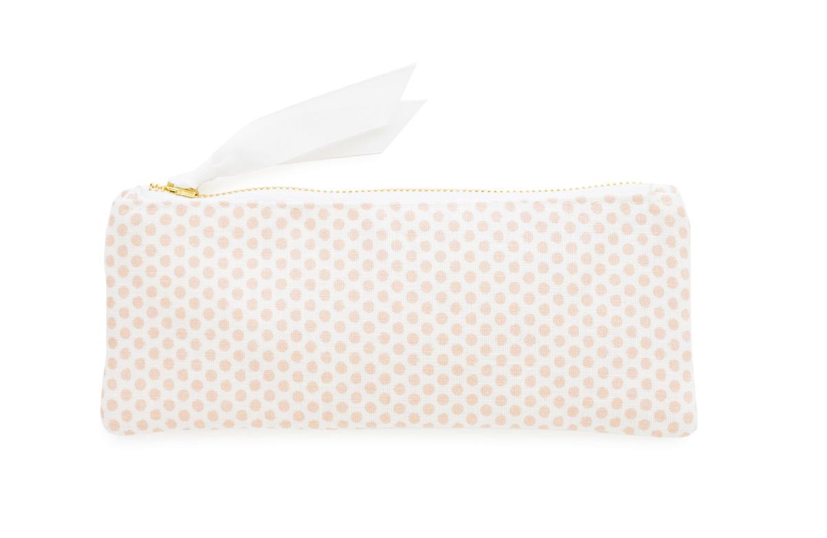PENCIL POUCH, PINK PAINTED DOT