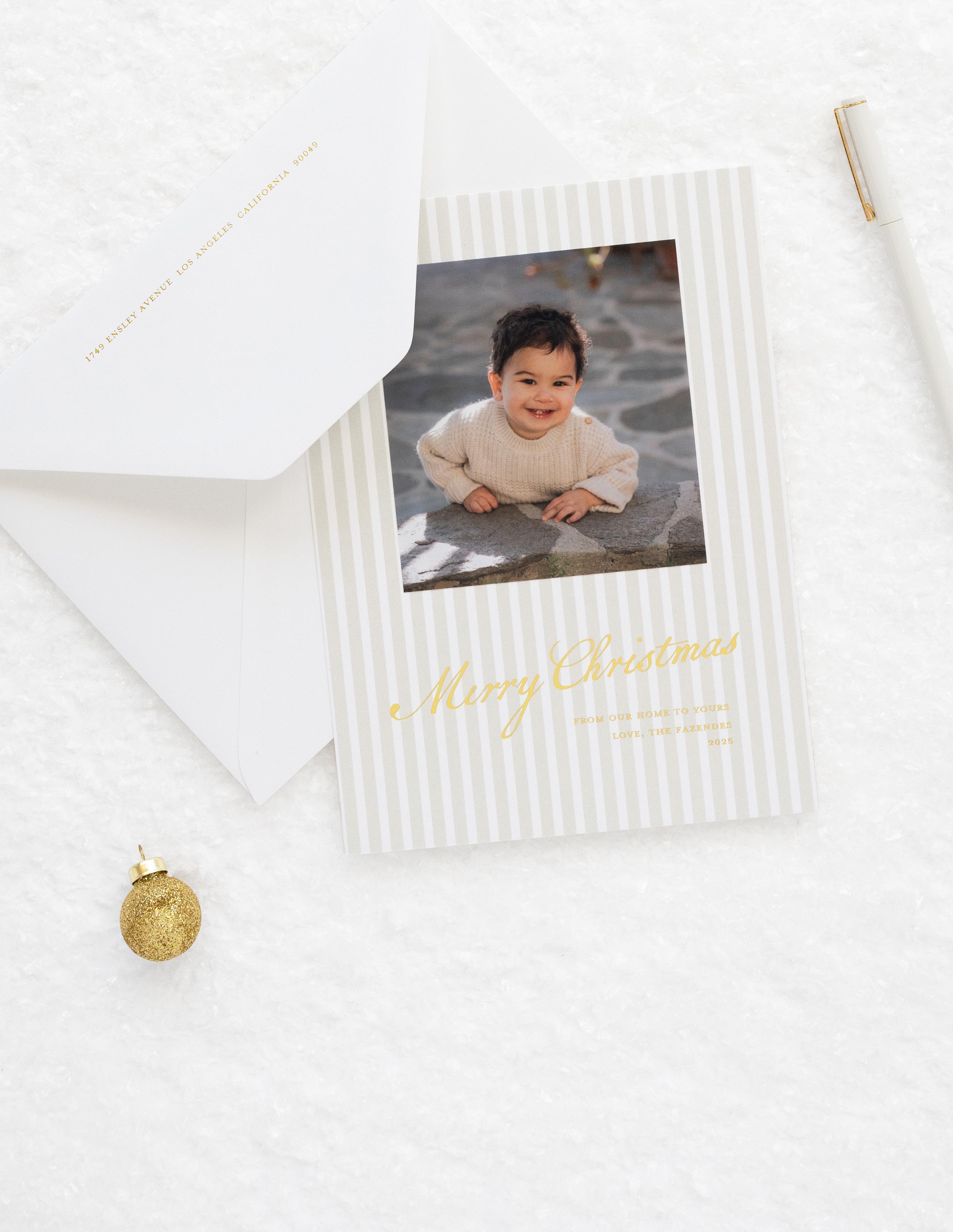 CHAMPAGNE + SILVER FOIL ON REPLY SIZE CRISP WHITE PAPER