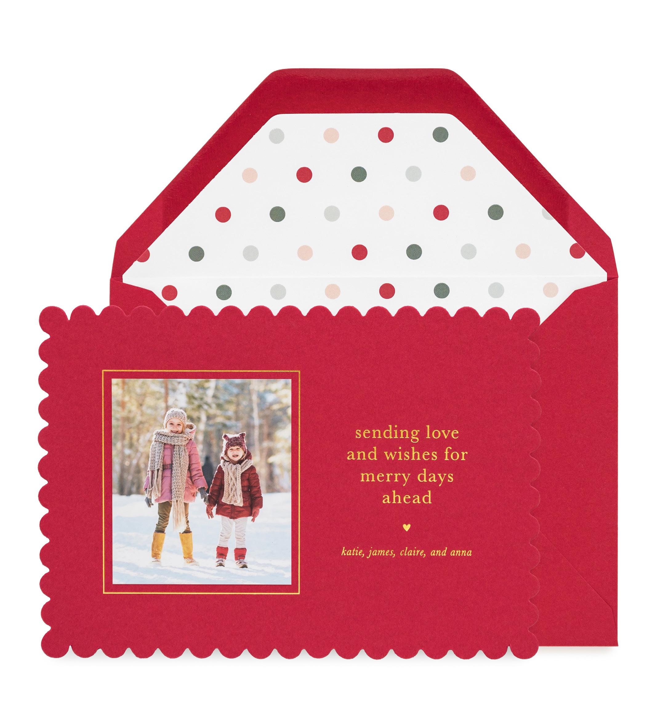 WHITE FOIL ON RED PAPER SCALLOP DIECUT