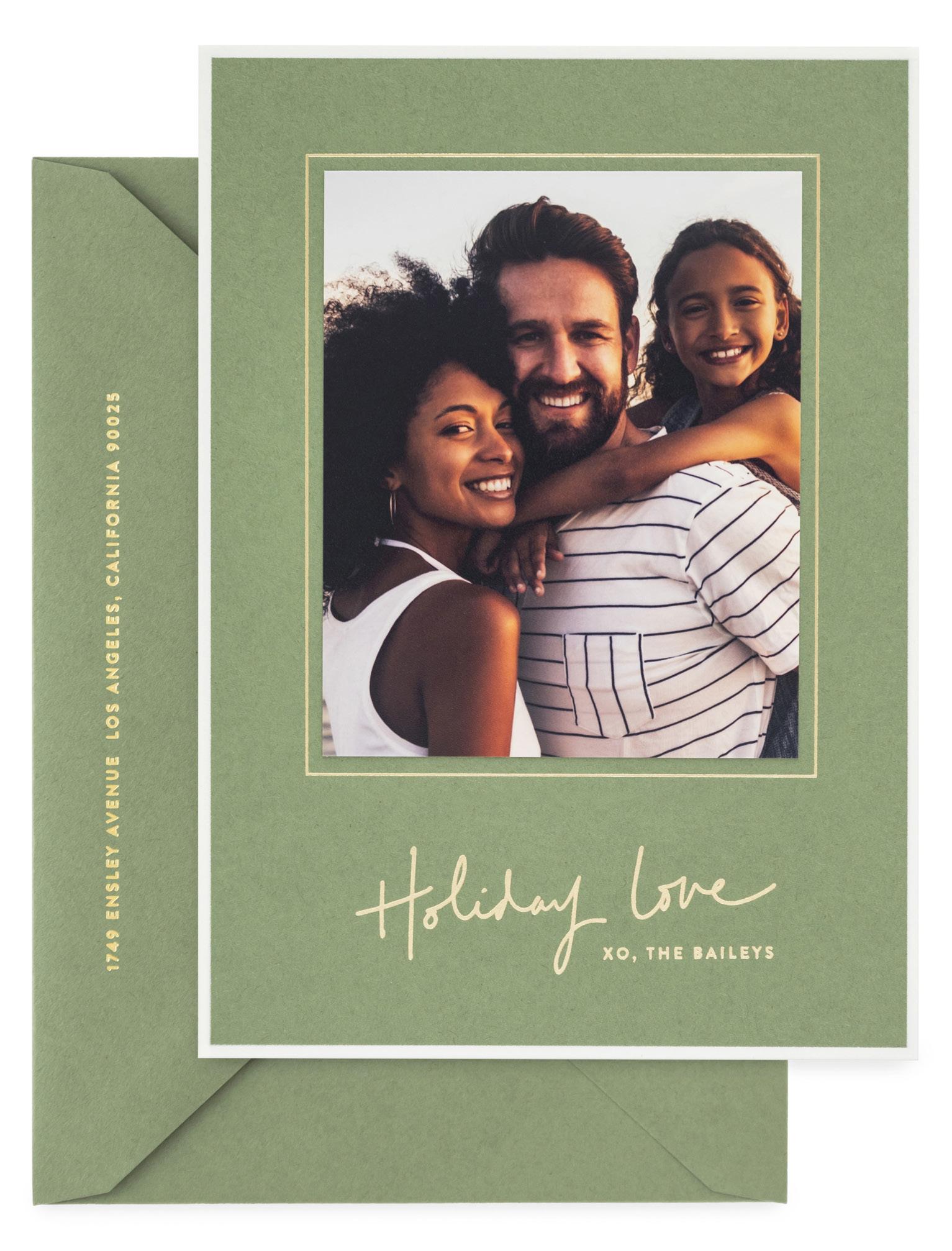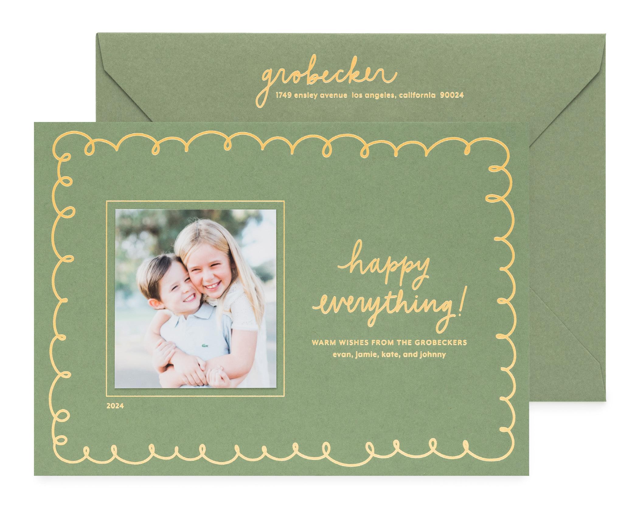 CHAMPAGNE FOIL ON MOSS GREEN PAPER HAND-PAINTED WHITE BORDER