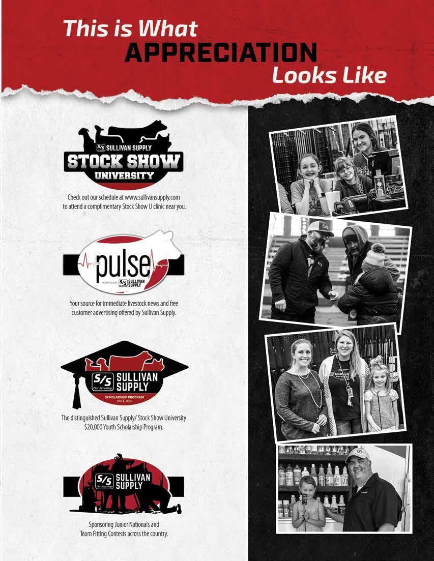 A truly outstanding set of applicants in our 2025 Distinguished $20,000 Sullivan Supply Scholarship program. 1,540 applications from 46 states and Canada proves that the interest of our Ag youth runs deep. It is a blessing now more than ever to be a part of this great industry and to see this generation flourish in the barn, the showring, in academics and in their community. A huge thank you to our scholarship selection committee of industry leaders (non-Sullivan Supply employees or family members) who spend so many volunteer hours choosing our 20 winners. Congratulations to all our winners and applicants. Over $360,000 has been gifted to young individuals since the inception of this program in 2008. Sullivan Supply is a stock show family owned and operated company founded in 1989 by John and Dede Sullivan. With it’s national headquarters in Dunlap, IA and locations in Hillsboro, TX, Lodi, CA, Hillsboro, OH, and Stillwater, OK, Sullivan Supply is known as the innovative leader in livestock grooming supplies.