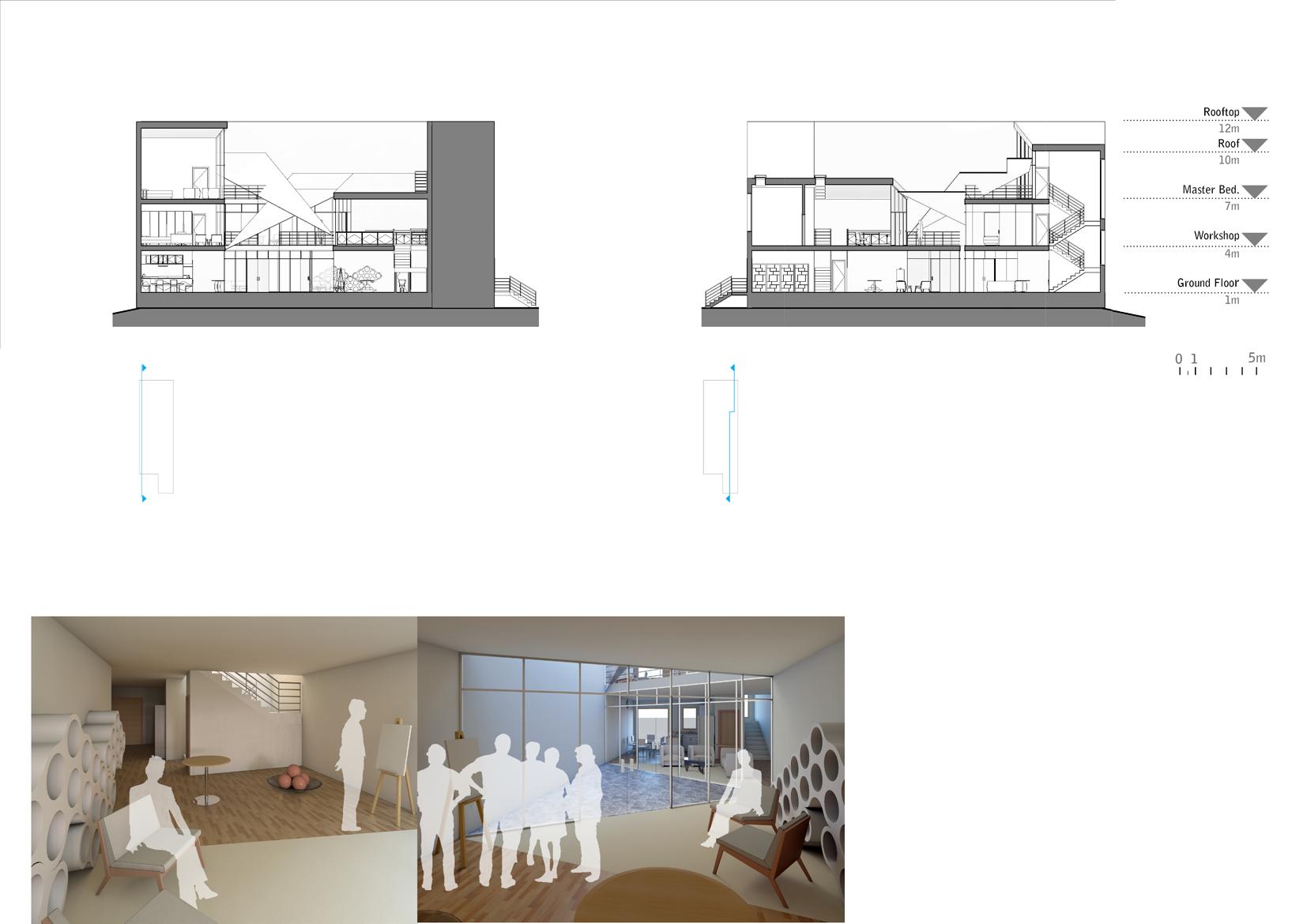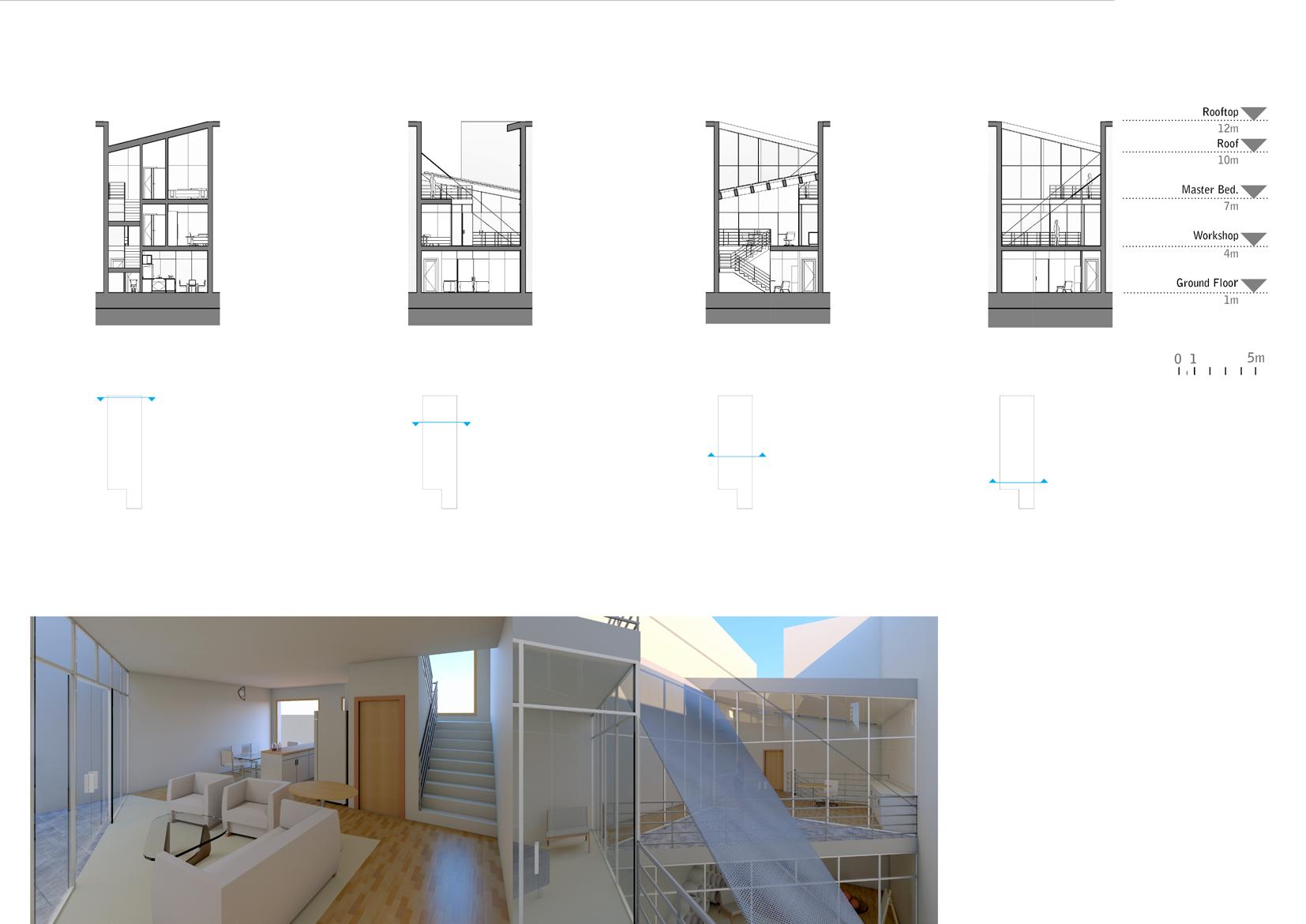 The house has to be designed for a family for four with the two children just returned back from college to live with their parents. They would be using the house not just to live but as an extension to their work. I proposed the children would set up a fashion boutique and use one of the rooms upstairs as a studio.