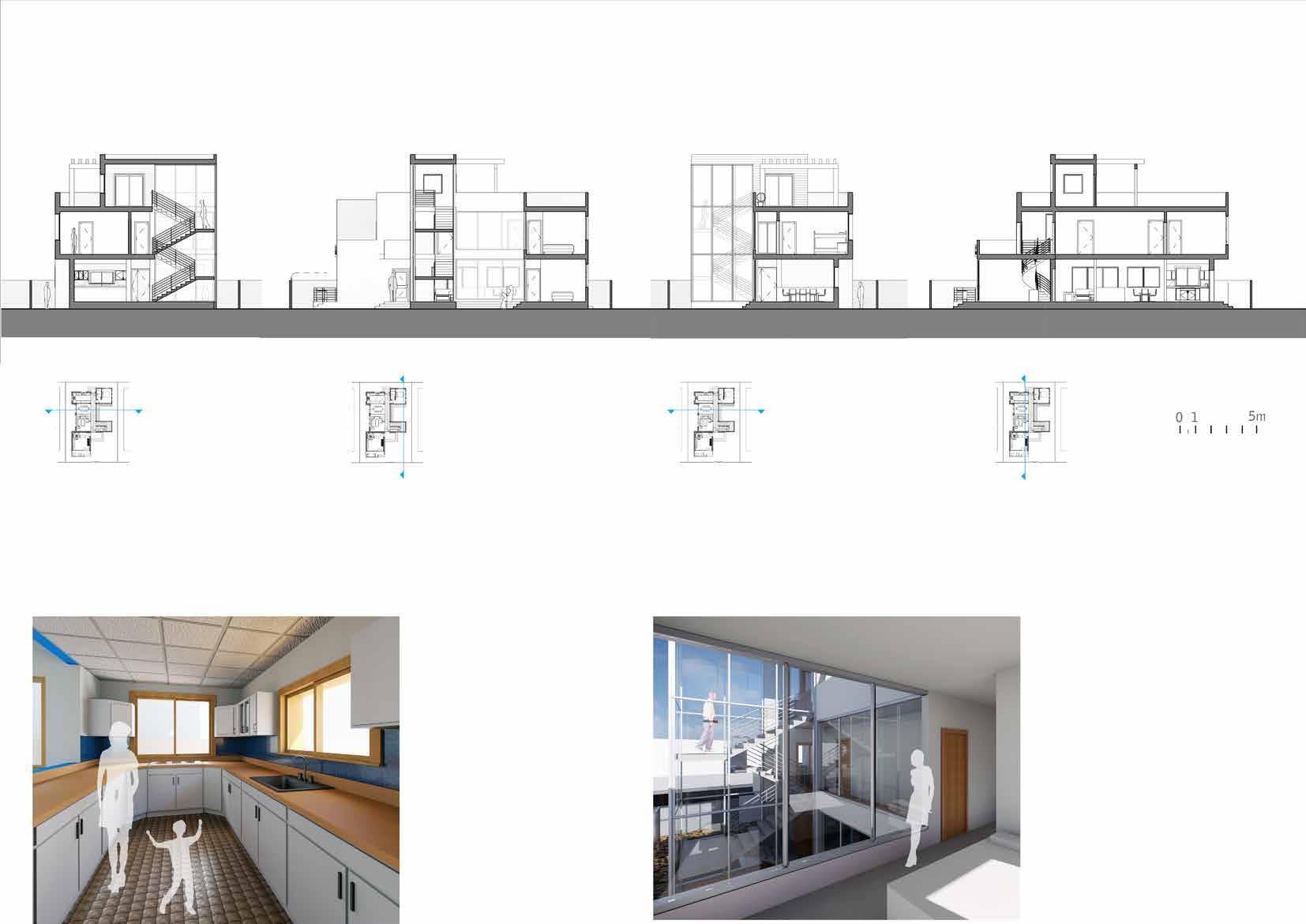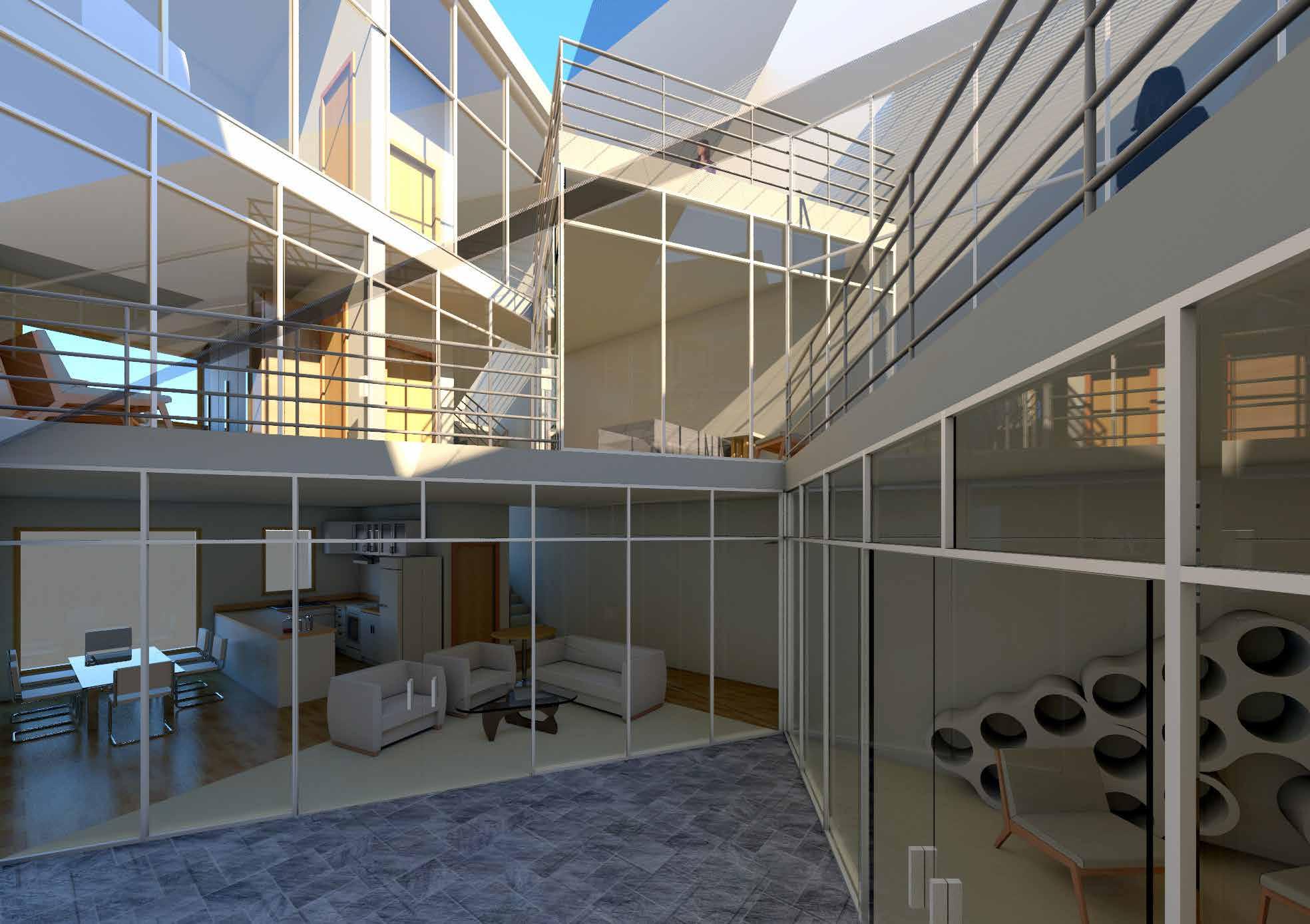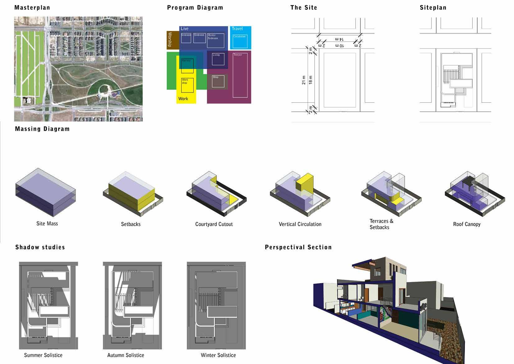 This project was a response to the Modern Ideas House Ideas Competition. The competition’s aim was to reinterpret the idea of modern in the context of the current economy. The site is located on an abandoned runway at the redeveloped Stapleton Airport in Denver. This planned community includes 180 site parcels, 44 X 68 ft with 5ft setbacks.
