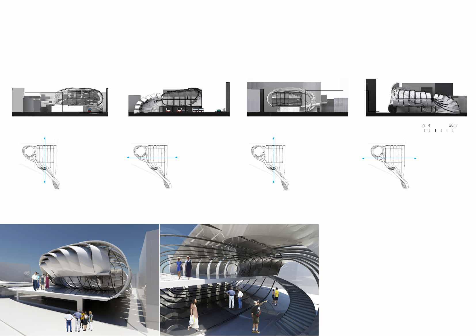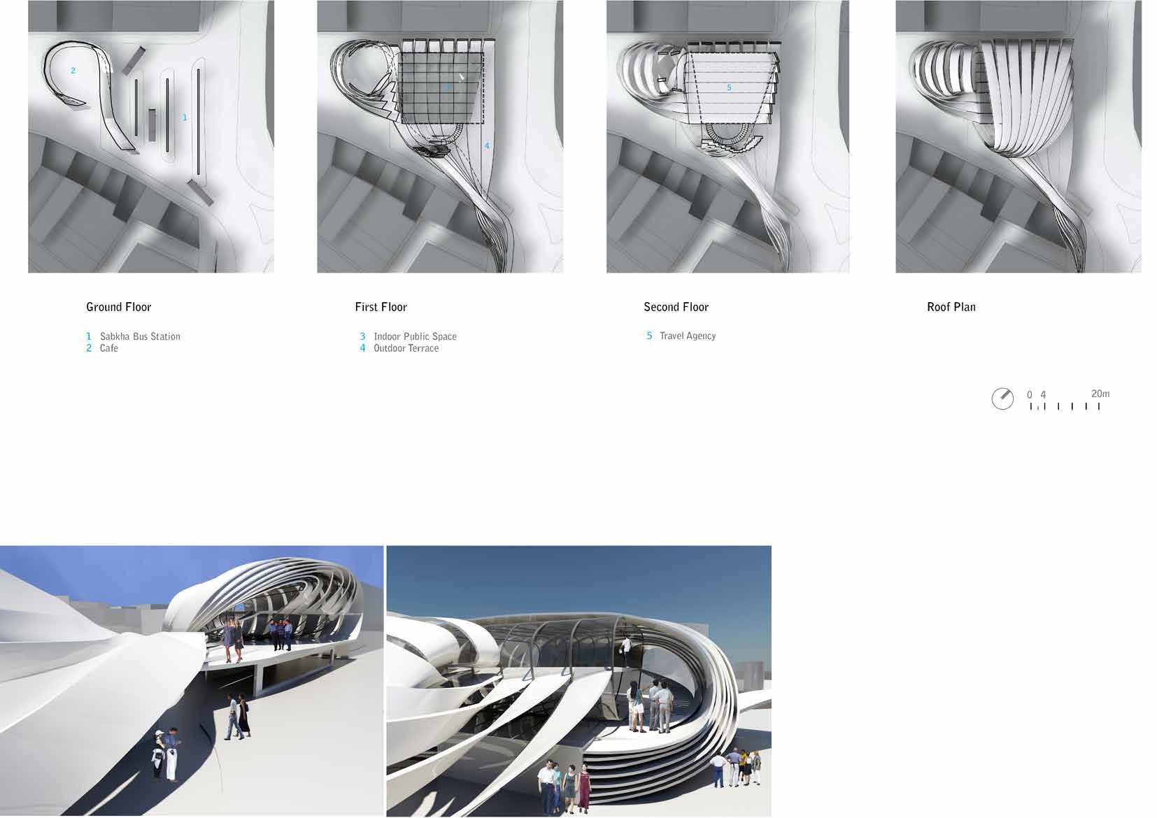The site chosen was the Sabkha Bus Station in Deira, Dubai. It is an old city center node of transition. The system was used in cohesion with the pragmatically elements to give a highly contextualized form for the new bus station on the site. Along with the bus station, the intervention also houses a public café on the ground floor, a public space on the upper floor and a travel agency on the upper most floor.