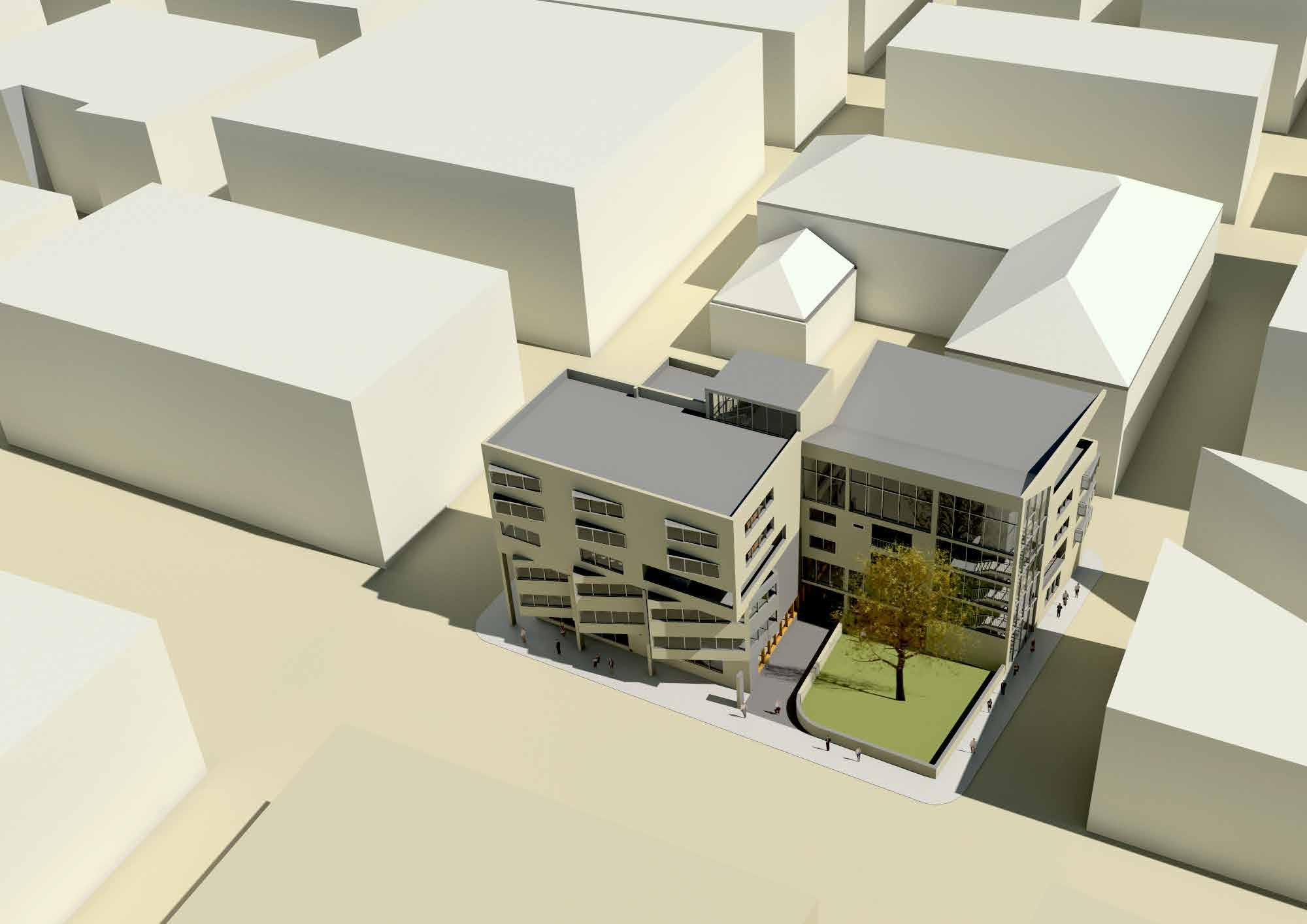 The design approaches was to first preserve the existing tree on site and then create a large public space so as to integrate the project in the context. Various programmatic spaces were stacked so as to preserve the amount of privacy required along with the circulation needs.