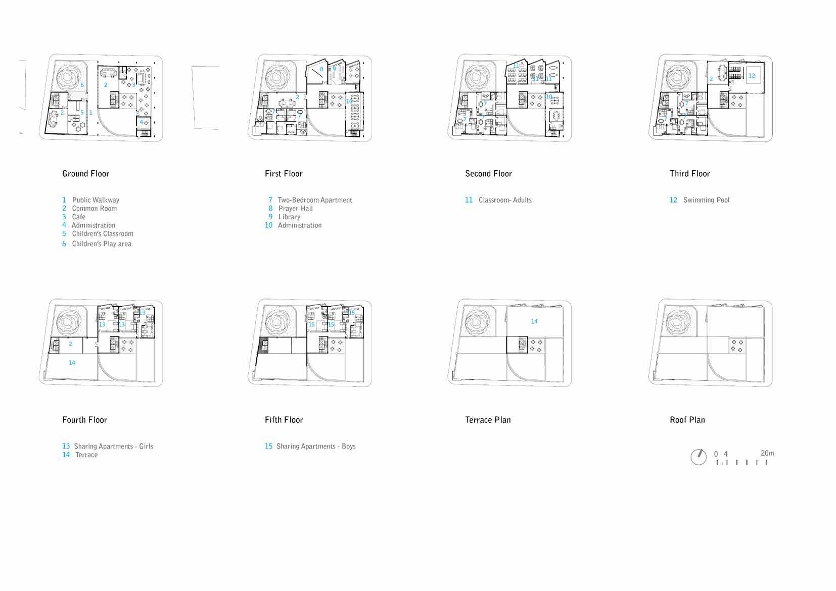 The program was to include educational and residential spaces along with working spaces for young adults and families. The program also includes religious spaces, and athletic spaces.