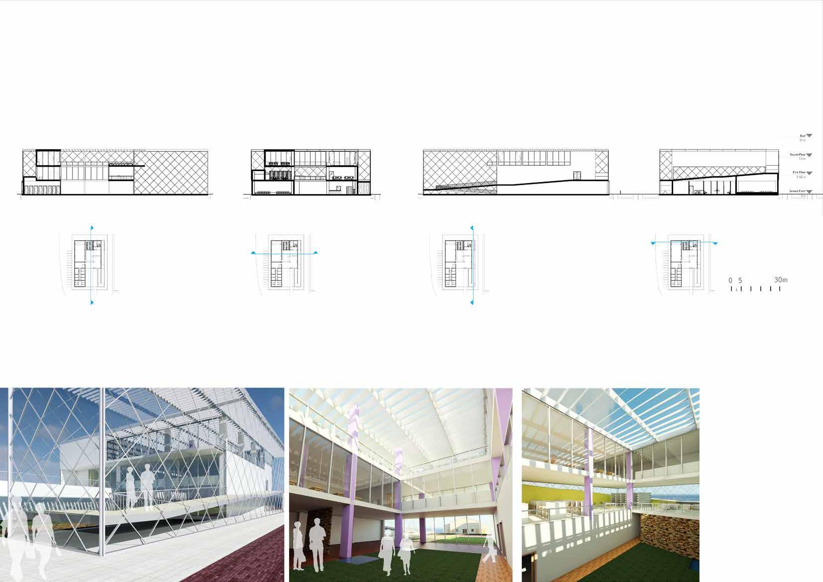 In winter the roof can be closed off to form a closed environment which is insulated to retain heat energy in winter season. The ramp aids in stopping cold winter winds and acts as the main display area.