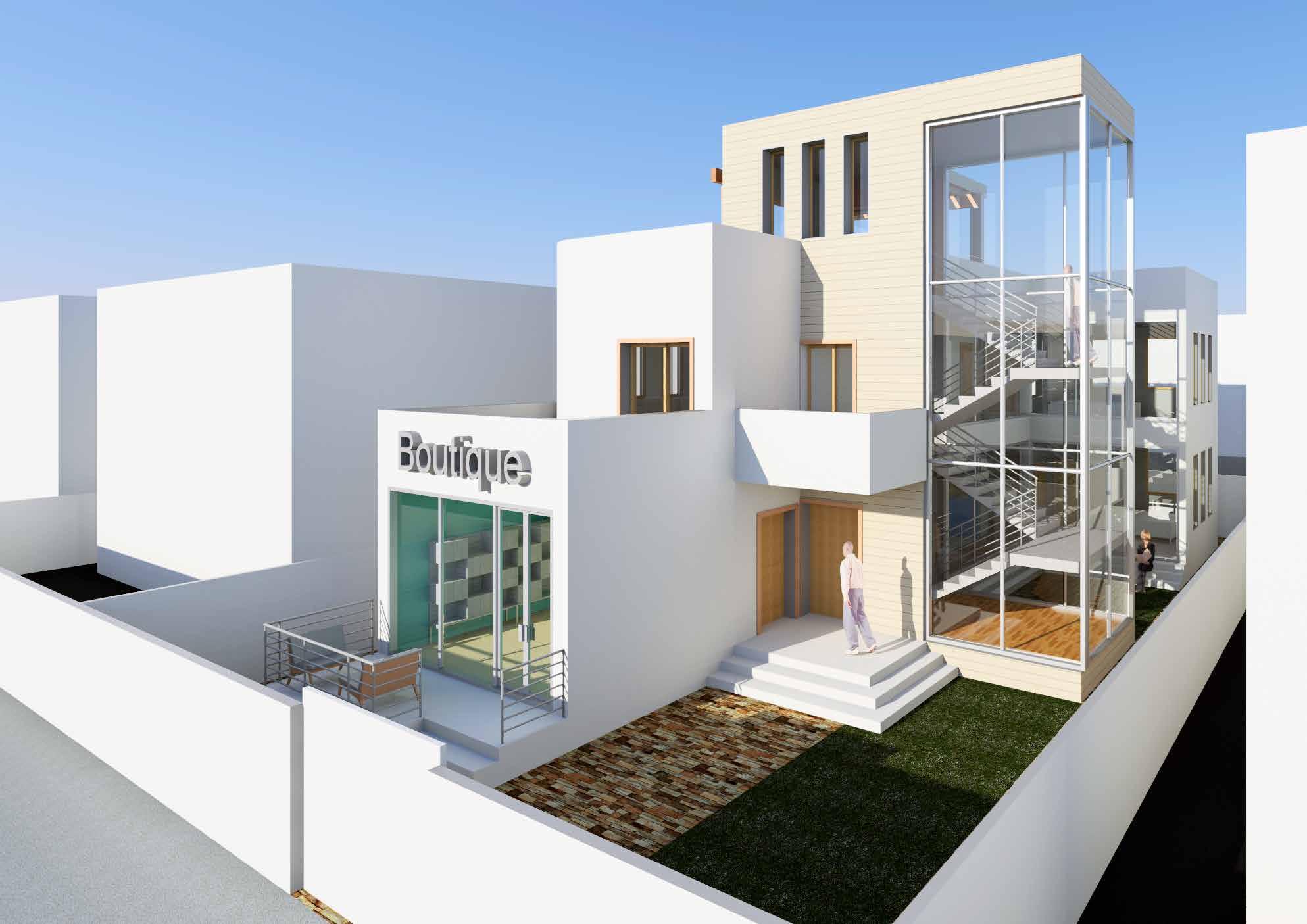 This 300 square meter project is a villa for a weaving artist in Sharjah. The given site was long with two elevations on short ends. The concept of the project is derived from the patterns made by overlapping of treads.