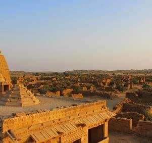 The Forgotten Elegance of Solitude- Hidden in the TharDesert near Barmer, the 11th-century Kiradu Temples stunned me with their haunting beauty. As sunset bathed the ruins in gold, I stood among Solanki-style pillars carved with dancers and deities. A local leg- end warns not to stay past sundown—a superstition I didn’t test. But there’s something sacred about that silence. Kiradu doesn’t just impress—it humbles you. The remains of at least five temples have been discovered at Kiradu. Of these, the Someshvara temple, nearest to the road, is in the most complete condition. Its surviving parts are sufficient to reconstruct the original temple design, although the shikhara has collapsed and the mandapa is miss- ing most of its roof. The walls and columns are high- ly decorated with sculptures, including figures of ani- mals and humans, which mostly remain in place. The mandapa columns form an octagonal shape. The art historian Percy Brown termed the architecture style as “Solanki mode”.[2] Today the style is more of- ten called Māru-Gurjara architecture.The Vishnu temple is at the other end of the group, with only the highly carved columns of the mandapa still standing; Michell dates this a century earlier. [3] In between these two are three Shiva tem- ples in varied condition, with