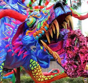 Craft: Hand-carved, brightly painted wooden animal or mythical figures.