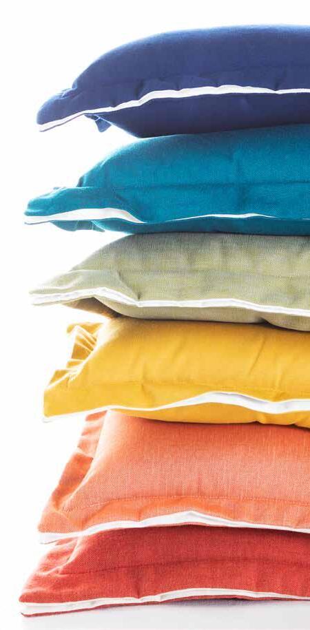 Easy-to-clean covers constructed with naturally stain resistant synthetic yarns.