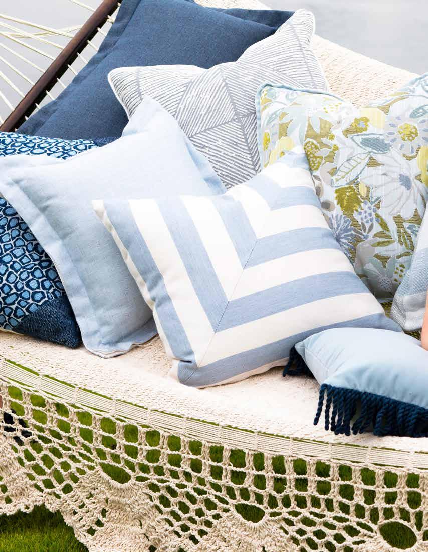 WENDY JANE IS A CURATED COLLECTION OF INDOOR AND OUTDOOR PERFORMANCE PILLOWS AND RUGS. EACH PIECE IS HANDCRAFTED IN THE USA USING FASHION-FORWARD FABRICS DURABLE ENOUGH TO WITHSTAND WEATHER, PETS, AND WHATEVER ELSE LIFE BRINGS TO THE TABLE!