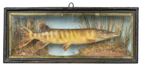 36 An early Victorian stuffed pike with label for the “International Fisheries Exhibition South Kensington” to rear 32cm high by 71cm wide £150-250
