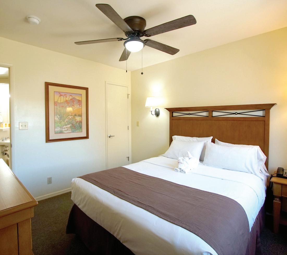 The two-story, two-bedroom villas feature a fully equipped kitchen, two fireplaces, whirlpool bath, and a private backyard with a spa. Each villa offers a quiet, relaxing retreat amidst the backdrop of beautiful Cave Creek. Watch a magnificent desert sunset from your private backyard spa, or enjoy a romantic evening dining under the stars. The comfort and beauty of this resort will amaze you.