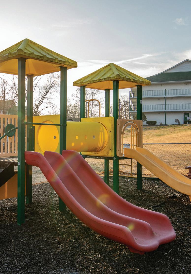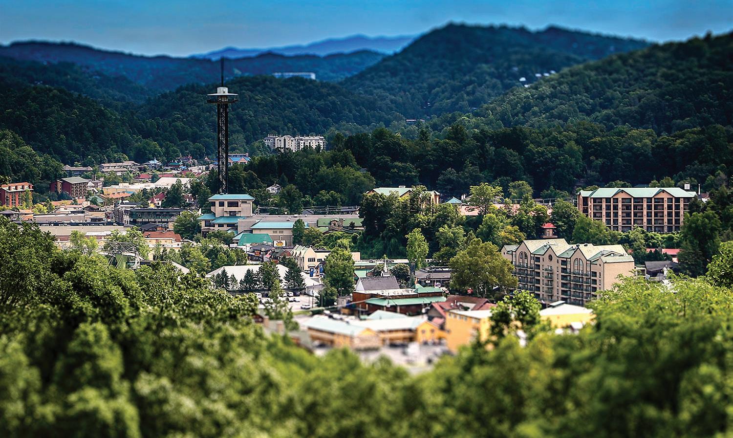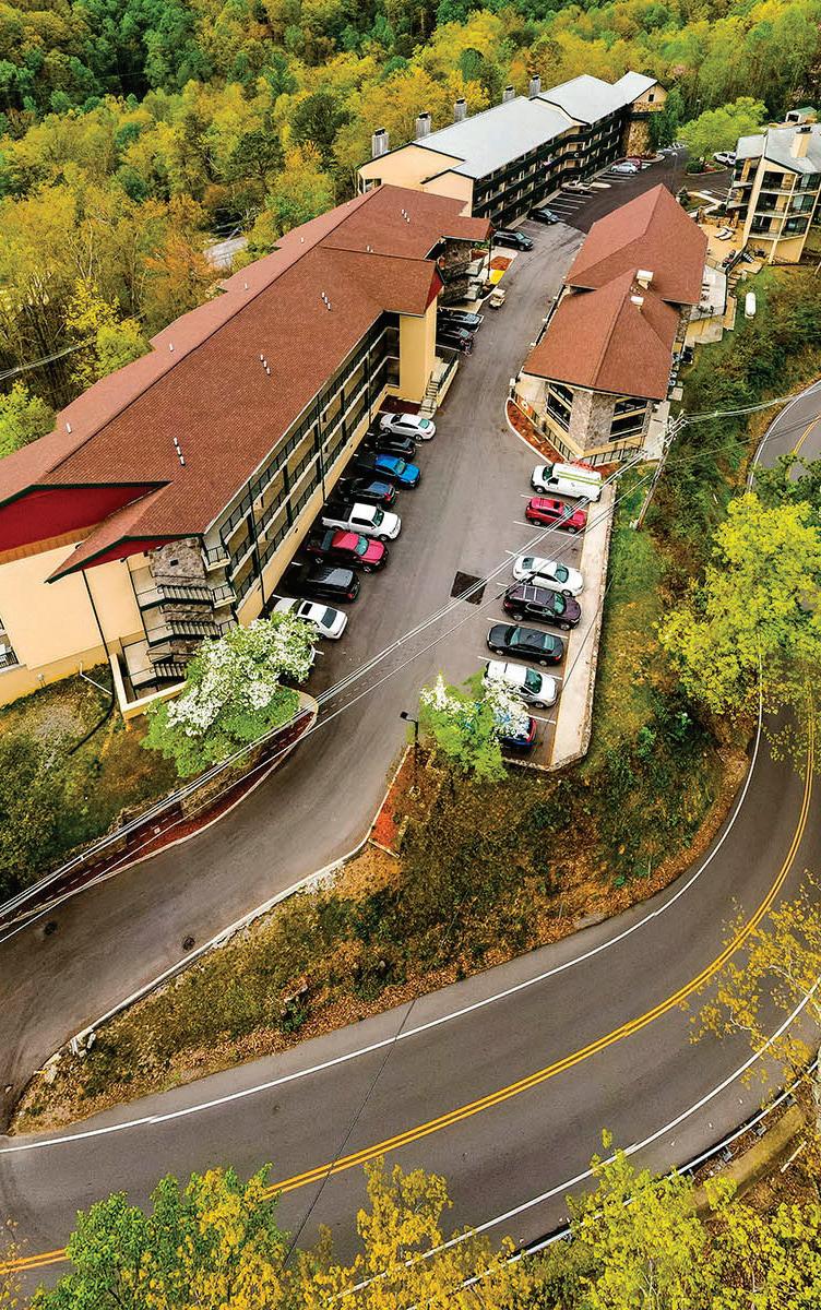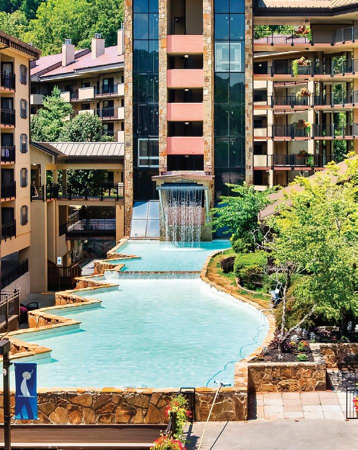 Located in the heart of the Smoky Mountains, Pigeon Forge offers plenty of fresh air and family fun. Go hiking in the mountains, take in a show at Dollywood, or both! Enjoy the beautiful views and amazing attractions from The Lodges at the Great Smoky Mountains (see page 210) resort, with its private balconies and a cozy fire pit. A perfect respite at the end of the day!