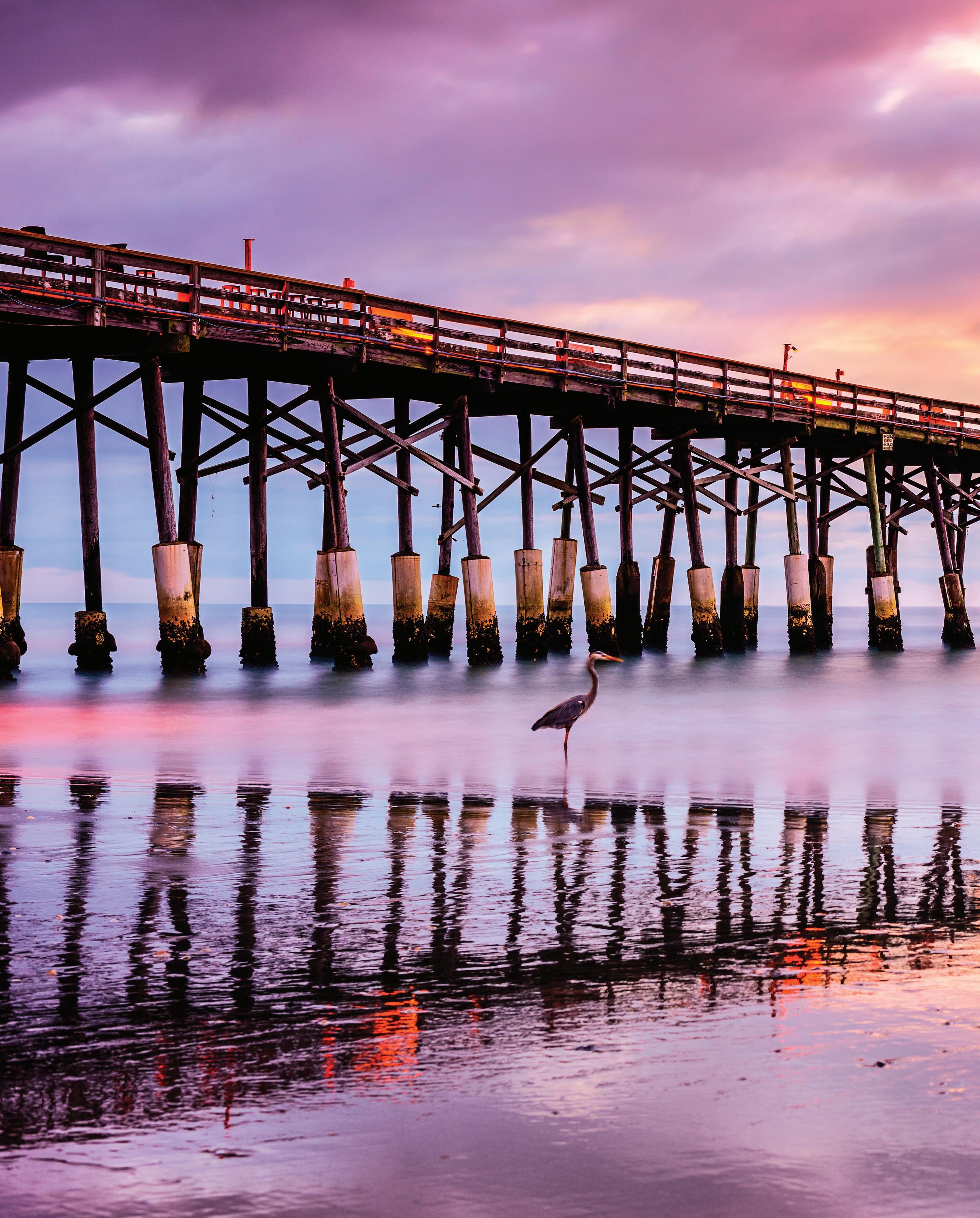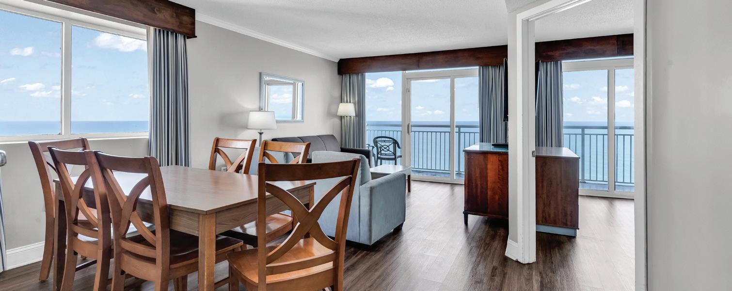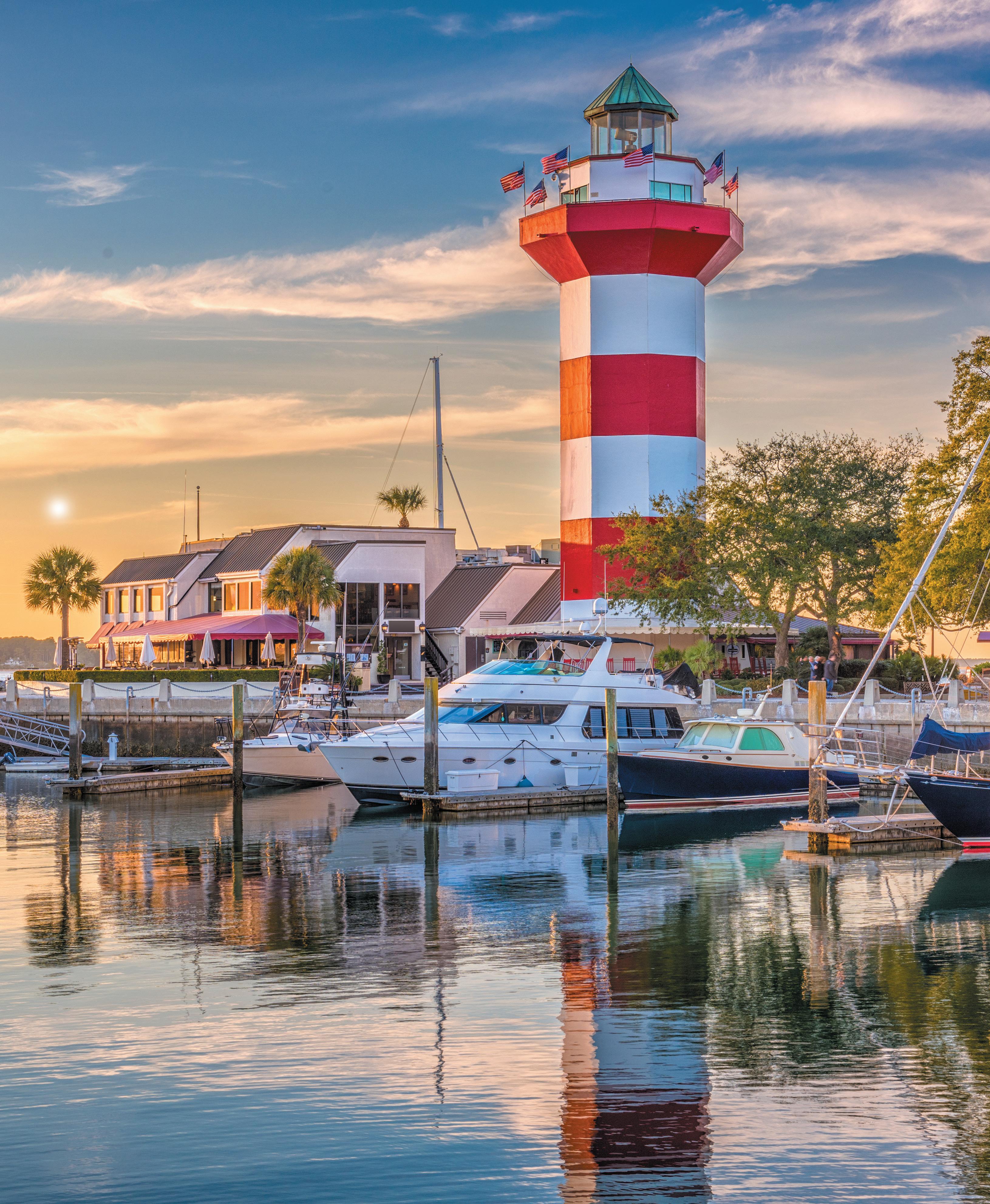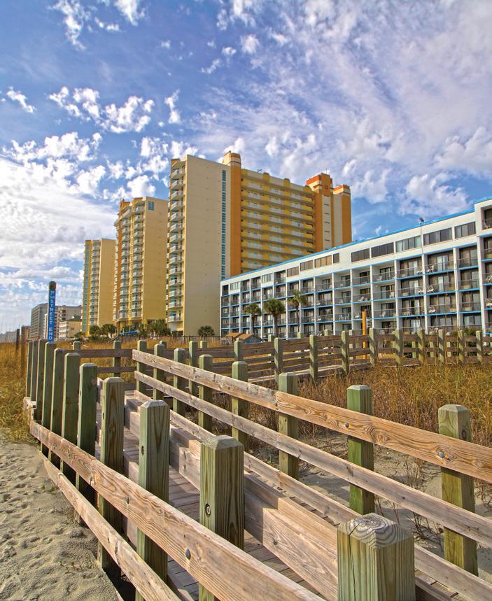 Myrtle Beach presents the quintessential beach vacation, ideal for those who relish a laidback, flip-flop lifestyle. Visitors enjoy wide beaches, clear ocean waters, and year-round moderate temperatures, complemented by vibrant entertainment and southern delicacies. Treat yourself to a stay at our oceanfront Maritime Beach Club in North Myrtle Beach (see page 188). It serves as the perfect base to explore the area’s attractions and offers the added delight of a glorious morning sunrise from your balcony.