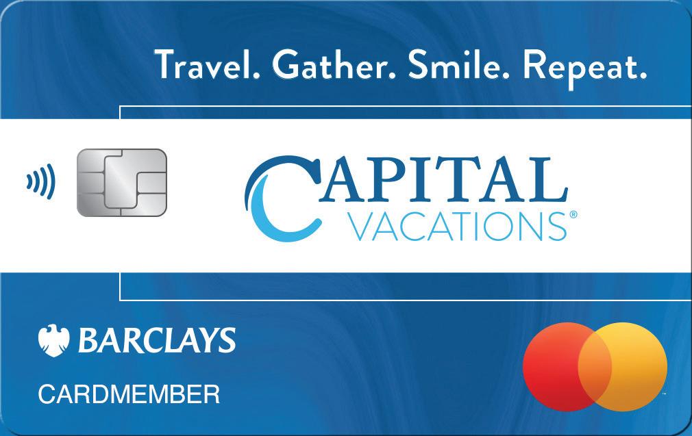 The Capital Vacations® World Mastercard® is issued by Barclays Bank Delaware pursuant to a license from Mastercard International Incorporated. Mastercard, World Mastercard, World Elite Mastercard, and the circles design are registered trademarks of Mastercard International Incorporated. Capital Vacations and related marks are registered trademarks and/or service marks in the United States and internationally. All rights reserved. © 2024 Barclays Bank Delaware, Member FDIC.