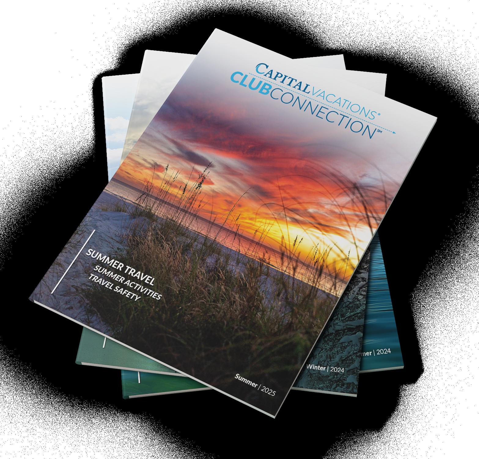 For the latest news about Capital Vacations®, our Owners, resorts, programs, and upcoming events, pick up our CLUBCONNECTIONSM magazine or view on our website. Each issue is packed with information about resort locations, travel tips, Owner reviews, and messages from our Co-President Travis Bary. You don’t want to miss the fun, so be on the lookout for our next edition!