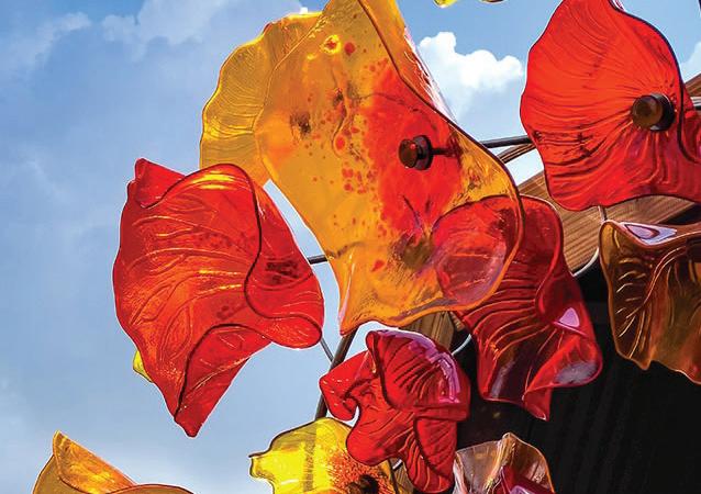 Stroll through the Museum of the Shenandoah’s seven acres of gardens and discover 30 larger-than-life glass sculptures of flowers, insects, and more. This beautiful outdoor exhibition features the work of Craig Mitchell Smith, one of America’s most innovative kiln-glass artists. Highlights of Gardens of Glass include a chandelier made of 600 autumn-colored glass leaves suspended from a maple tree, a 16-foot-tall stainless-steel dandelion, and a sculpture inspired by apple blossoms, created just for the MSV exhibition.