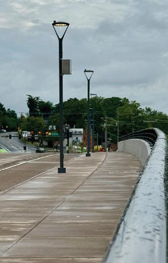 The bridge also makes it easier to get around the downtown area on foot. A pedestrian “knuckle bridge” wraps around Ting Pavilion and provides access along the west side of Ninth Street to the Downtown Mall and transit center. Additionally, a new stairway to Water Street and a second tunnel near the bridge’s southern edge improve east-west walking routes.