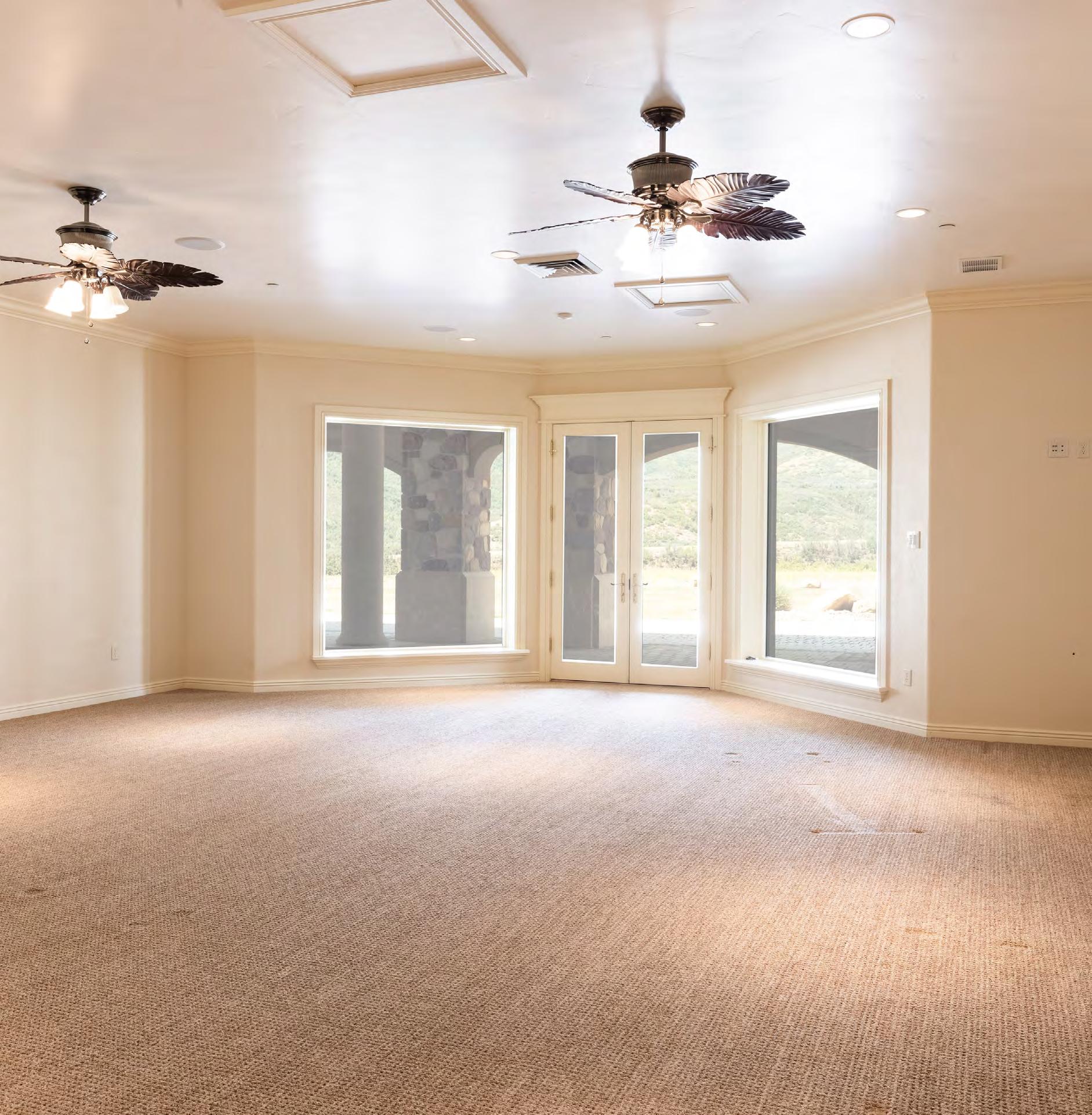 The kitchen opens up to a giant family room with 22’ ceilings and a wall of windows that look out over Hobble Creek Canyon. There is a carved stone fireplace, French doors that open to the deck, a wall ideally suited for a television, and plenty of room for multiple seating arrangements. For the family that spends a lot of time together, this is an ideal space.