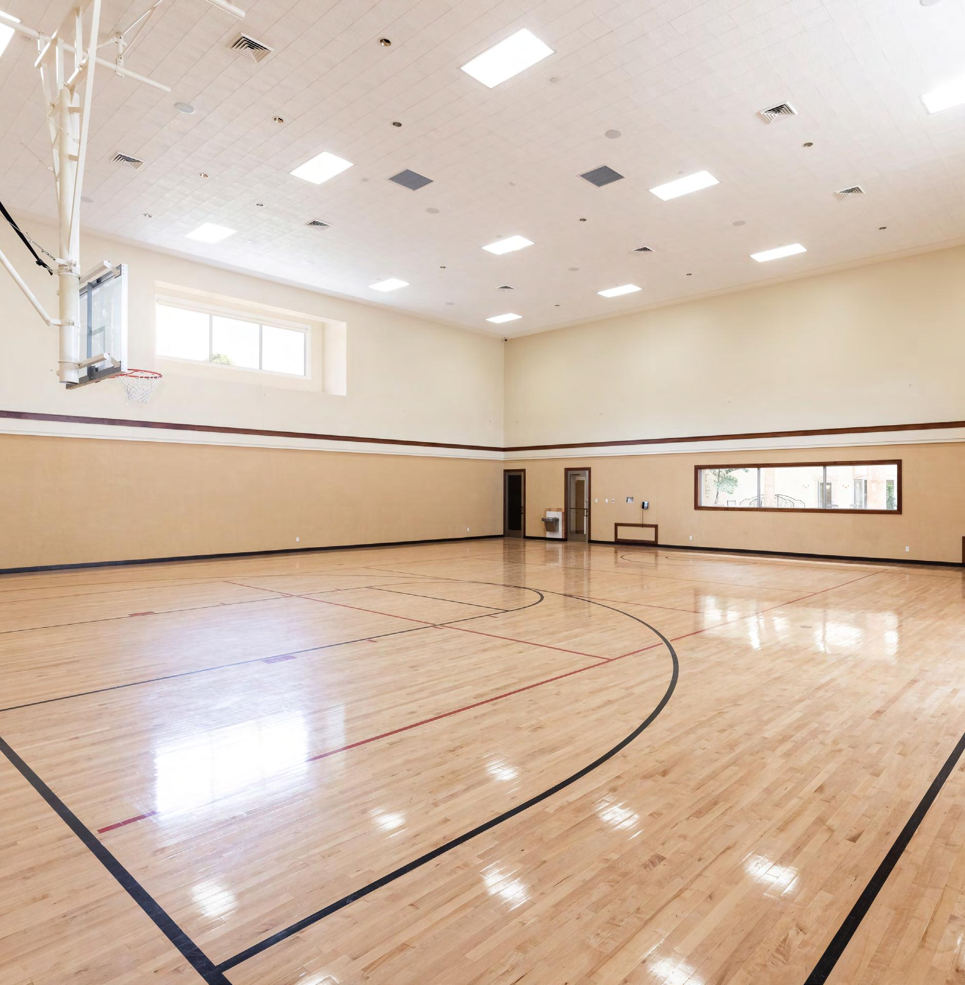 The basketball court is the size of an NBA half court. The enclosed space is even bigger, measuring out to 60’x60’ with a 24’ high ceiling. It was designed with the idea that it would not only be used for playing basketball, but you could utilize this space for corporate events and parties. There are also French doors that open out to the back patio.