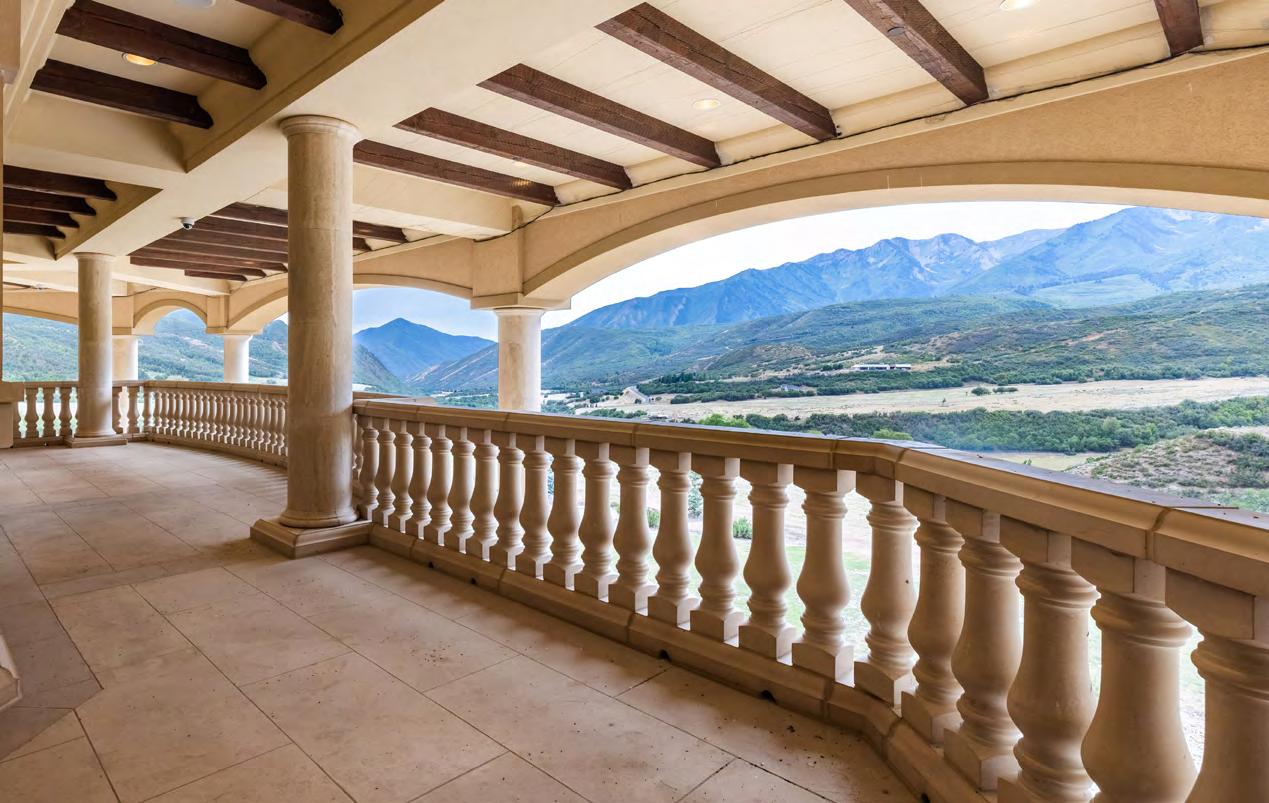 If you walked back behind the home far enough to where you can see the entire structure, you immediately notice how integral the exterior covered spaces of the home are to the architectural design. There is a massive deck that extends out nearly the entire length of the building with giant columns that jet up to support the roof that is suspended over 23’ feet above the deck. It is a truly magnificent site. The deck itself measures over 5,600 square feet. The functional uses make this the ideal space to entertain and soak up the amazing views of Hobble Creek Canyon.