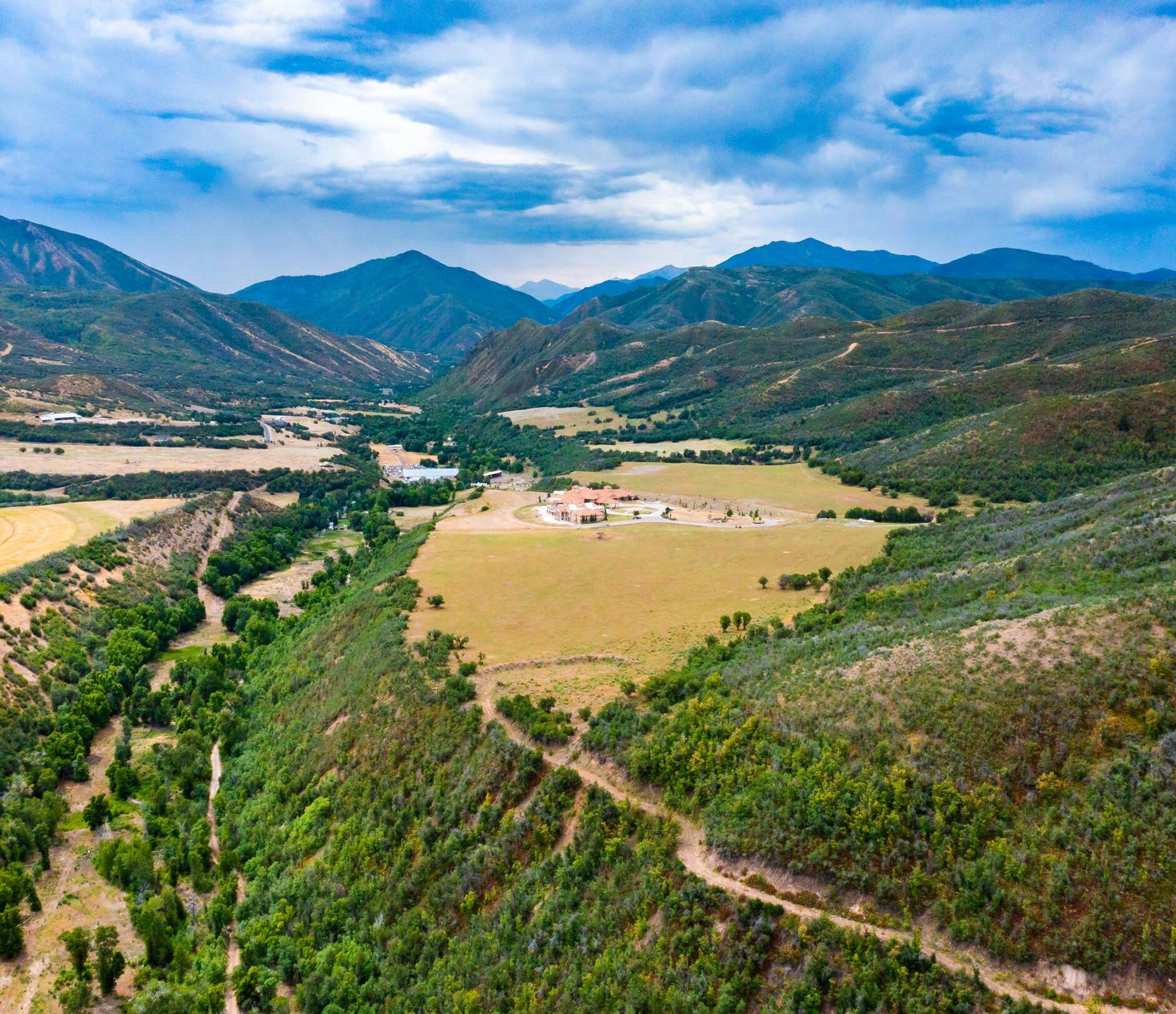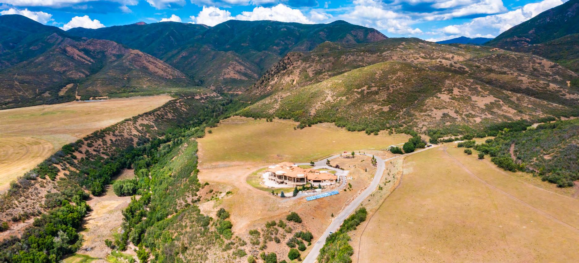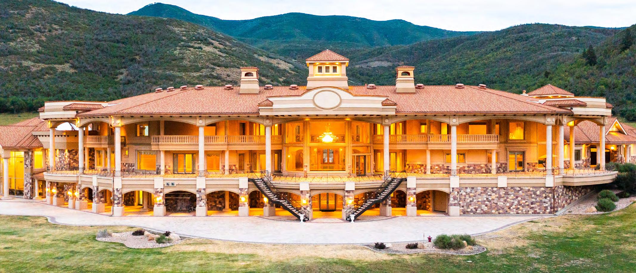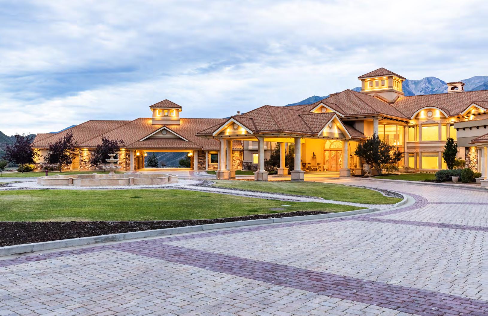 At the end of Hobble Creek Canyon sits one of the largest homes in the United States. The 50,738 square foot home is situated on a bluff with jaw-dropping views of the Wasatch Mountains. The scale of the home and the quality of the finish work are as stunning as the views. This is immediately evident as you walk in the front door and first see the grand entry with over 20’ ceilings, a massive chandelier, and elegant dual staircases. Just behind that is a formal living room with such exquisite detail and spectacular views that you are almost left speechless. From the huge master suite to the five guest suites, everything maintains this same level of luxury. The home is also ideal for entertaining. In the past they have hosted events with hundreds of guests. The property boasts a resort-style swimming pool with a waterslide, waterfall, lazy river, rope swing, hot tub, children’s area, and kitchen. There is a basketball court, two-lane bowling alley, 27-seat theater room, sauna, exercise room, game room, children’s play room with a pirate ship and slide, and an area designed for a shooting range. This property would be ideal for a primary residence, vacation home, or a corporate retreat. With 156 acres, this is also ideal horse property. Hobble Creek Canyon offers fantastic recreational opportunities from one of the top public golf courses in Utah to hiking, biking, camping, hunting, horseback riding, numerous ATV and off-road trails, snowmobiling, and crosscountry skiing areas. The home is only 35 minutes from a private airport and just over an hour from Salt Lake City.