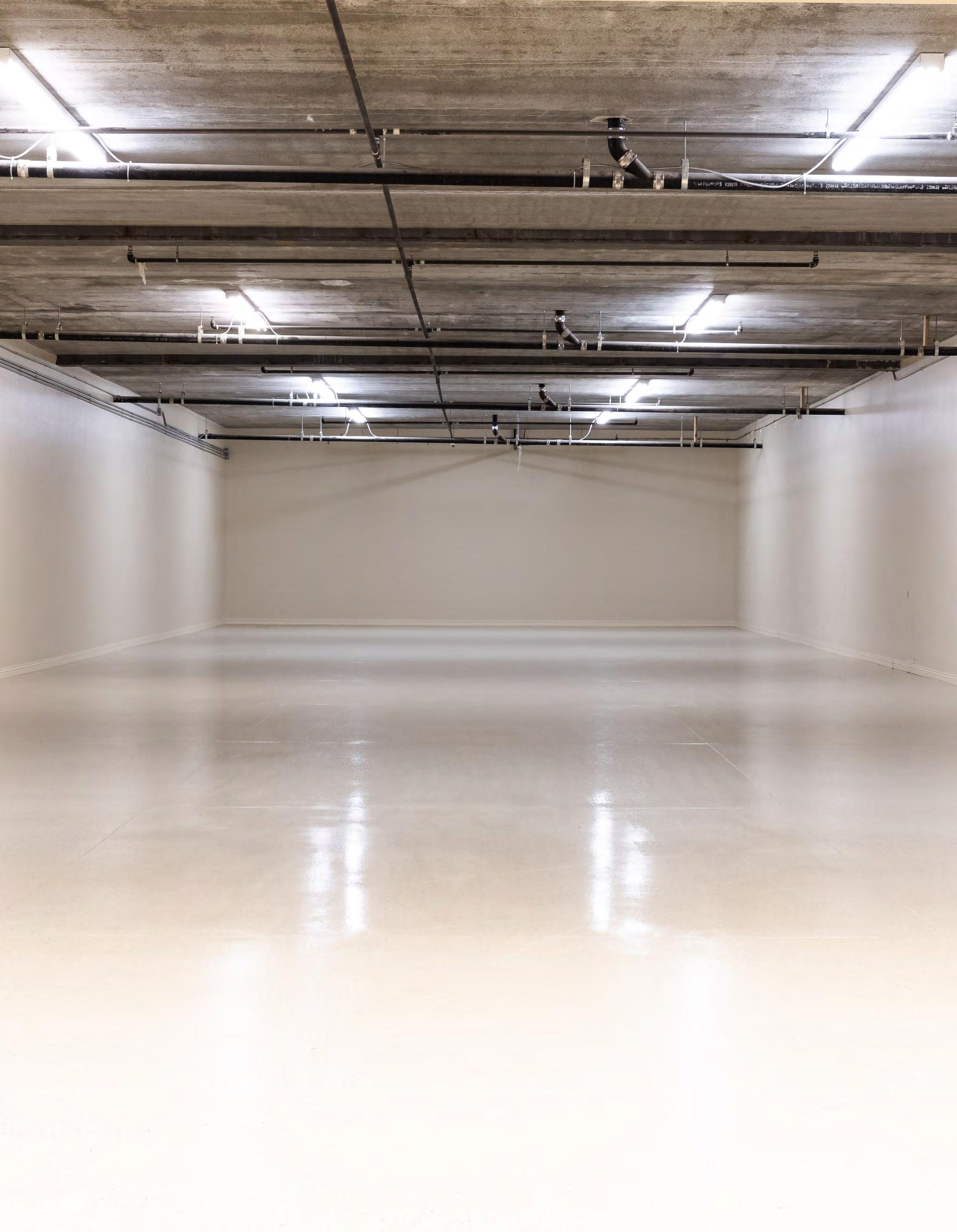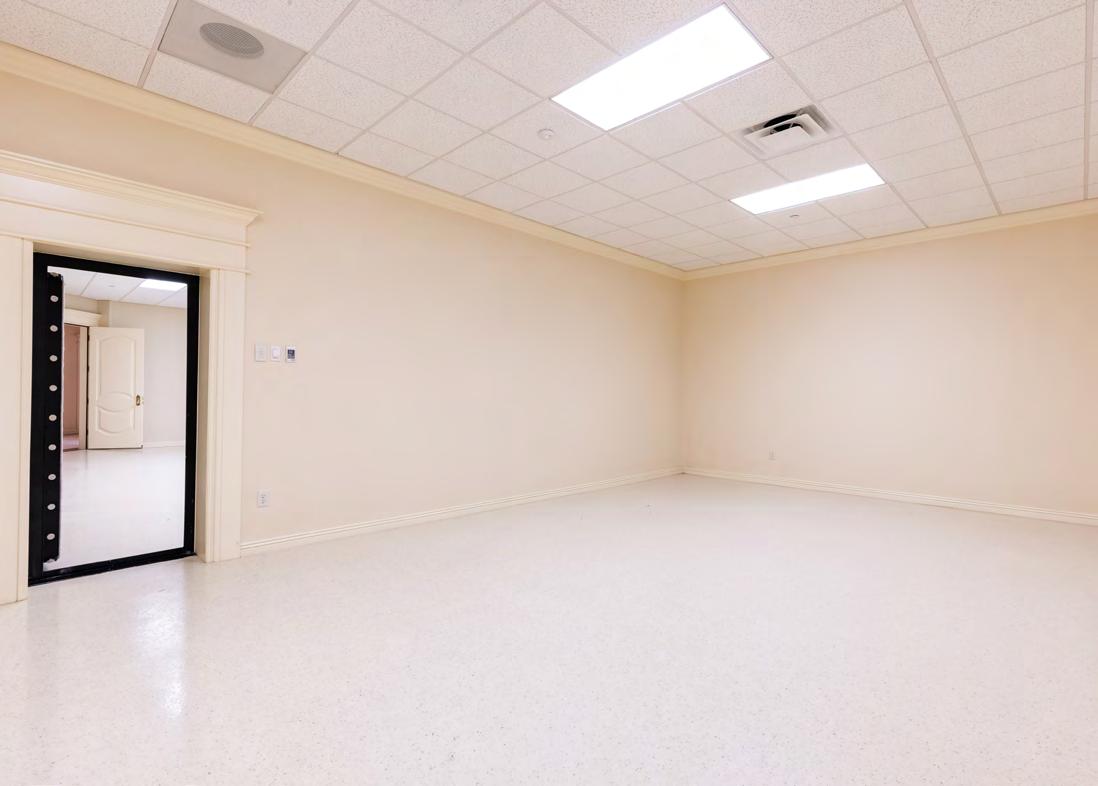 Next to the bowling alley, there is an enormous area designed to be a shooting range. It is 31’ wide and 134’ long with concrete epoxy floors and a large safe room that measures 16’x26’. If you don’t want a shooting range, this space could be used as a storage area or even a roller-skating rink.