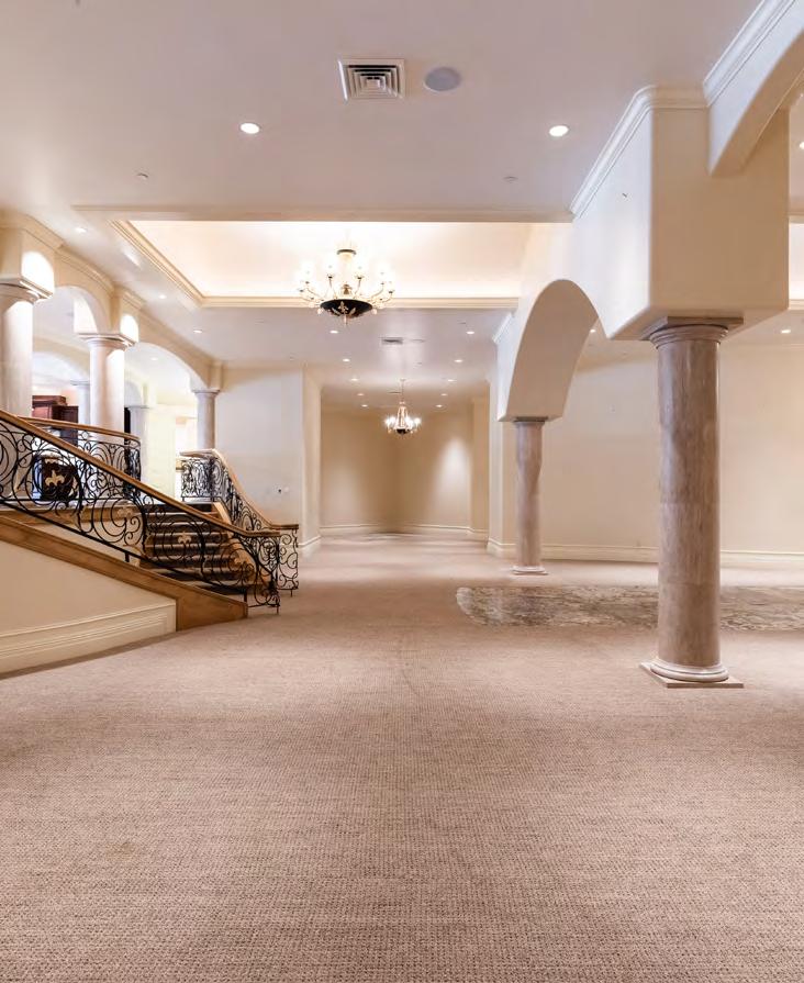 One of the unique rooms in the home is a massive area originally designed to be a trophy room. It has tall ceilings, a mixture of carpet and granite flooring, and lots of wall space. This could also serve as a family room, a game area, or even an arcade.