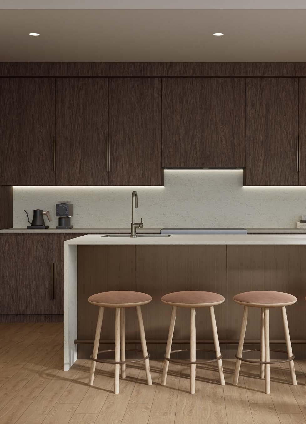 3. Walnut Wood Veneer at Kitchen Cabinets