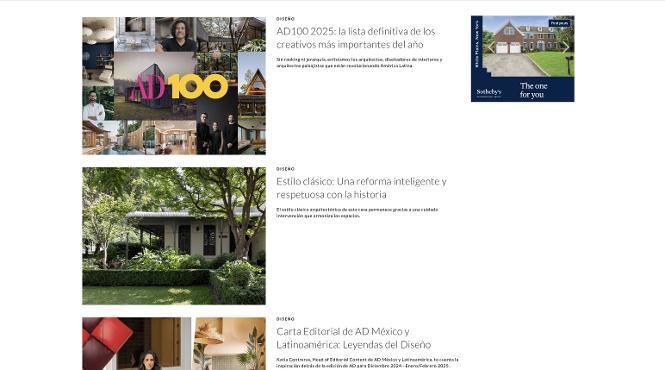For the first week of each month, Sotheby?s International Realty®banners will take over AD Mexico?s Design Section web page with 100% share of voice.