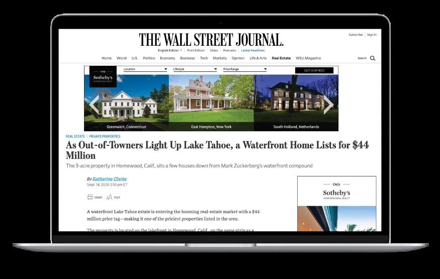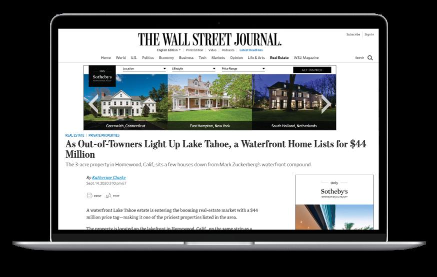 Sotheby?s International Realty®listings are listed and searchable across the following platforms: The Wall Street Journal, Mansion Global, Barron?sand Marketwatch, connecting exceptional properties to a high-net-worth audience.