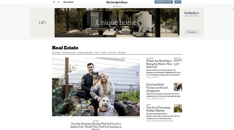 Sotheby?s International Realty will continue to have 100% SOV within the Real Estate Section Front on desktop and the Design & Interiors section on T Magazine.