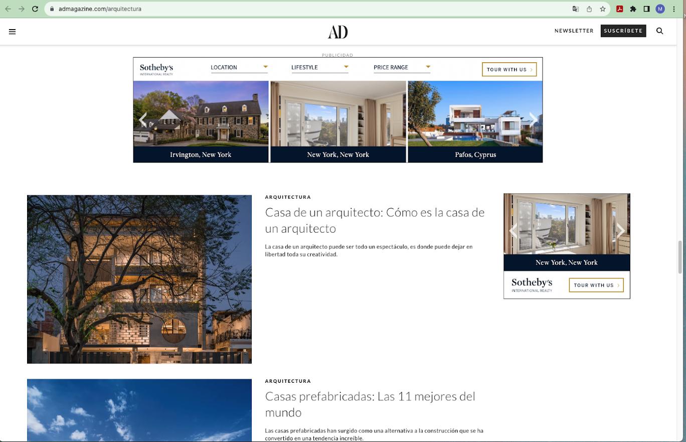 For the first week of each month, Sotheby?s International Realty®banners will take over AD Mexico?s Design Section web page with 100% share of voice.