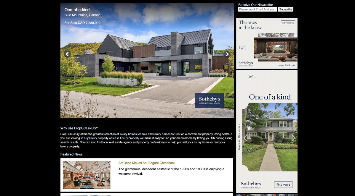 In 2026, the Sotheby?s International Realty®brand has continued its exclusive ownership of a prominent placement on their website with a full-year buyout of the real estate landing page. US Only.