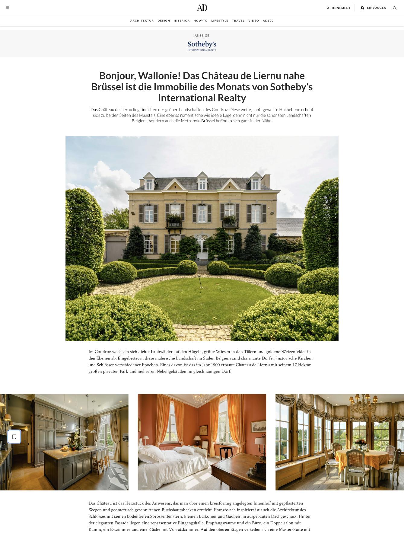 Building on the success of our Property of the Month series with AD, we?re expanding the concept to AD Germany. Over the course of the year, AD Germany will produce 12 high?impact advertorials, each spotlighting a different listing through a rich, image?driven article supported by coordinated social promotion.