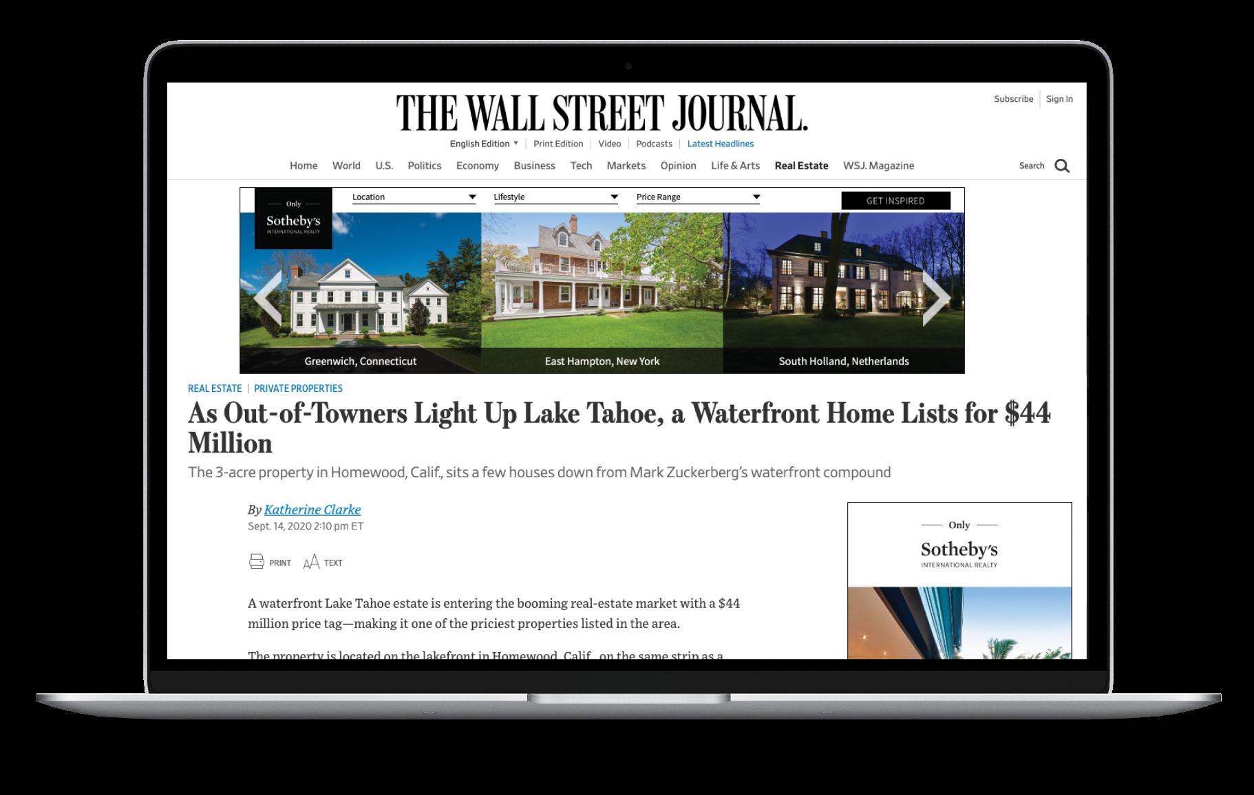Sotheby?s International Realty®listings are listed and searchable across the following platforms: The Wall Street Journal, Mansion Global, Barron?sand Marketwatch, connecting exceptional properties to a high-net-worth audience.
