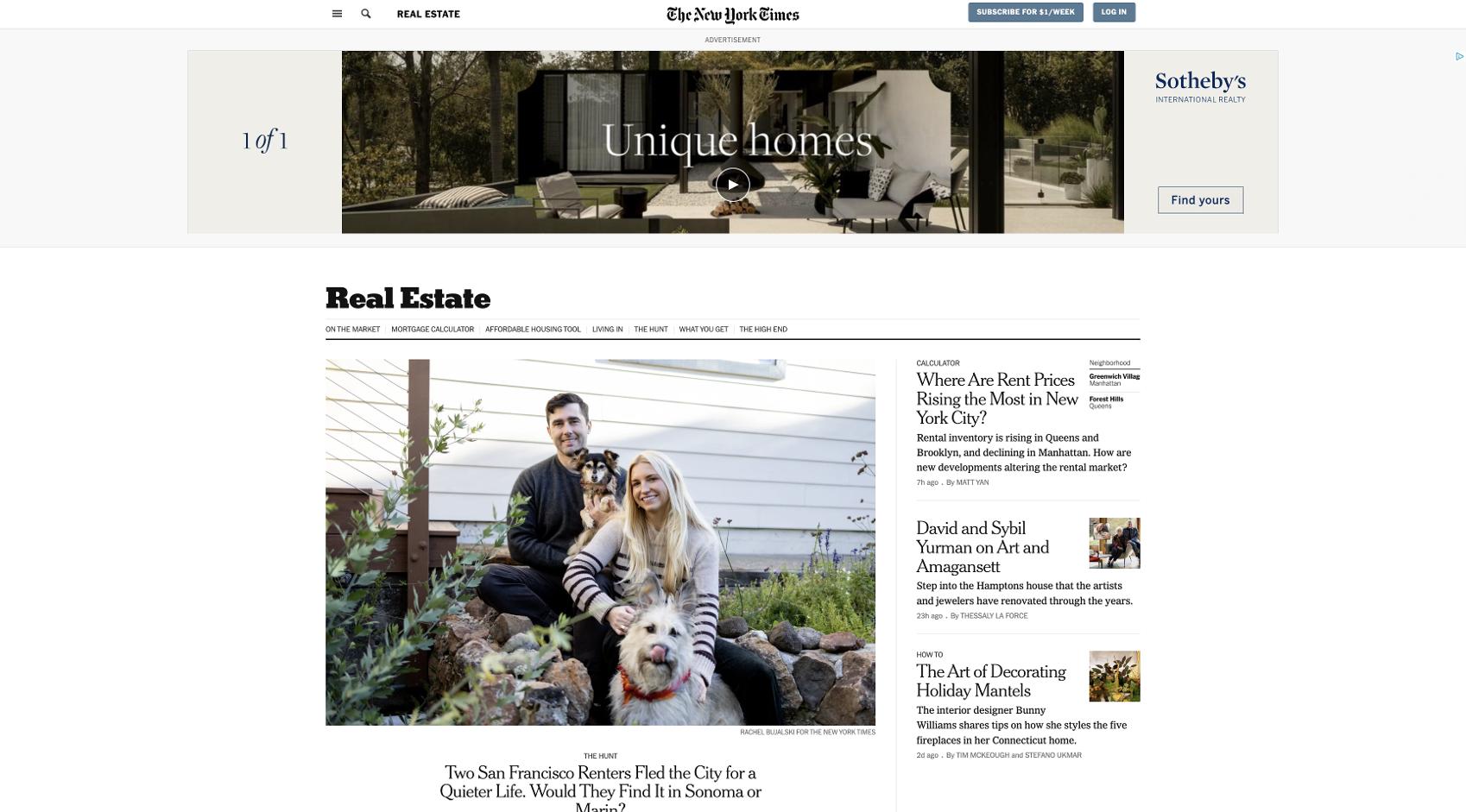 Sotheby?s International Realty will continue to have 100% SOV within the Real Estate Section Front on desktop and the Design & Interiors section on T Magazine.